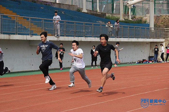 运动会历时一天,学院老师临时编入各个班级参加各项比赛,搭建了师生情感交流的活动平台。本次运动会除了传统的田赛和径赛两项之外还设立了摸石头过河、团体投篮、拔河、长绳、跳绳双飞和手足情等有意思的团队集体项目。赛场上时不时的传出老师和同学们的欢声笑语。