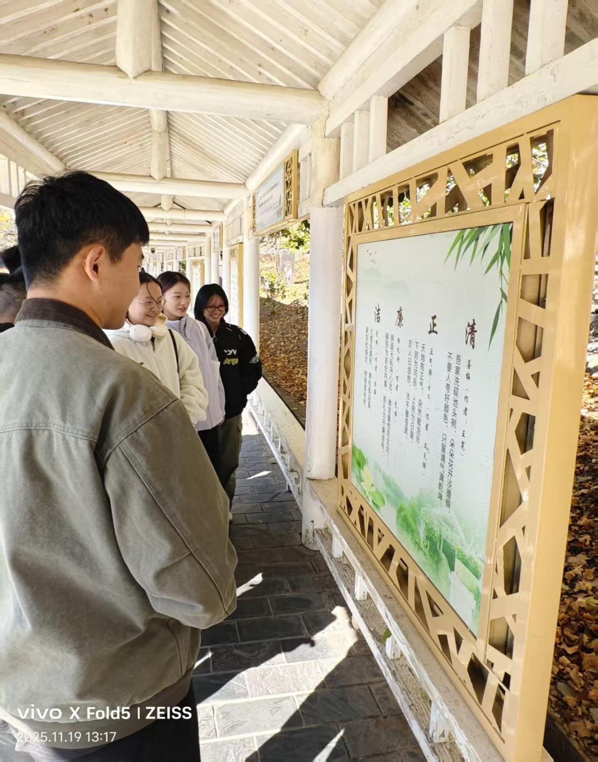 镜湖廉洁广场作为学校重要的廉政教育基地,环境清幽,寓意深远。活动当天,在支部委员的带领下,全体成员整齐列队,认真参观了广场各主题展区,通过现场展陈、图文解说等多种形式,深入了解了党风廉政建设和反腐败斗争的历史脉络与最新成果。大家驻足于寓意“清正廉明”的景墙前,细细品读廉洁故事,感受廉洁文化的浸润与感召。