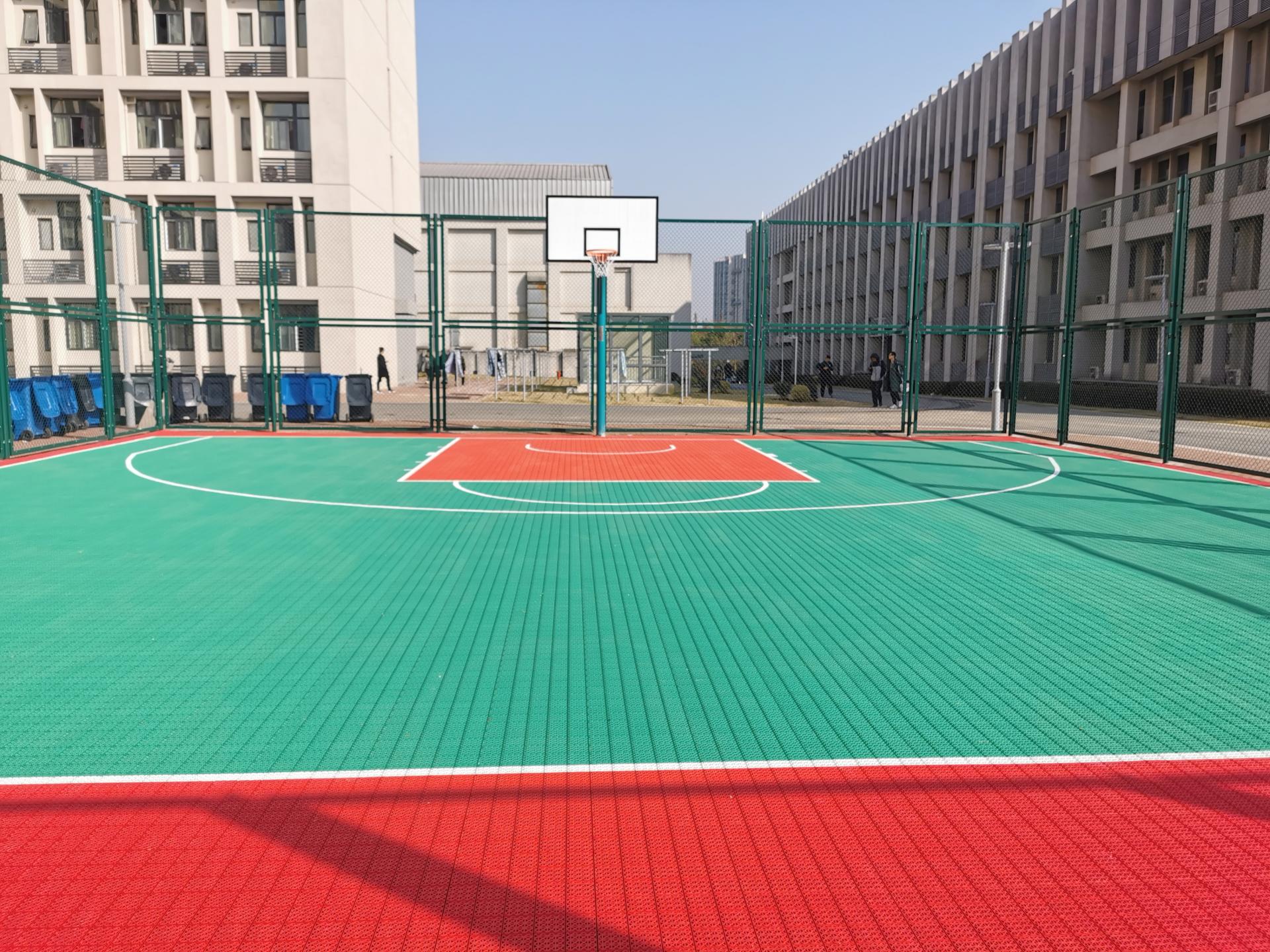 为了改善学生体育锻炼条件,营造体育文化氛围,优化学生宿舍区环境,学校决定在南苑宿舍楼11栋至12栋之间建造室外多功能运动场,现已施工完毕并投入使用。