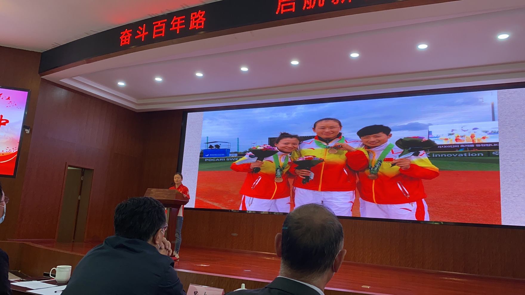 今年是中国共产党成立100周年,也是第十四届全运会和东京奥运会的决战之年,此次演讲比赛的举办旨在把党史学习教育与“祖国在我心中”爱国主义教育相结合,把弘扬中华体育精神与新时代女排精神相契合,为江苏健儿完成东京奥运会和十四届全运会目标任务提供强大精神动力和思想政治保证。李欢的演讲以“我把青春献给党”为主题,通过自己的成长经历,介绍江苏女垒从无到有,由弱变强,成为国内顶级职业运动队的建设历程,阐释 “奉献、拼搏、坚韧、协同”的江苏女垒精神。表达了将自身梦想与体育强国梦、中国梦紧密连接的万丈豪情,以及在赛场上为江苏争光,为中国添彩的志气与决心。