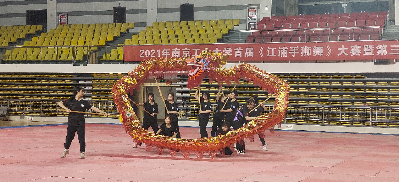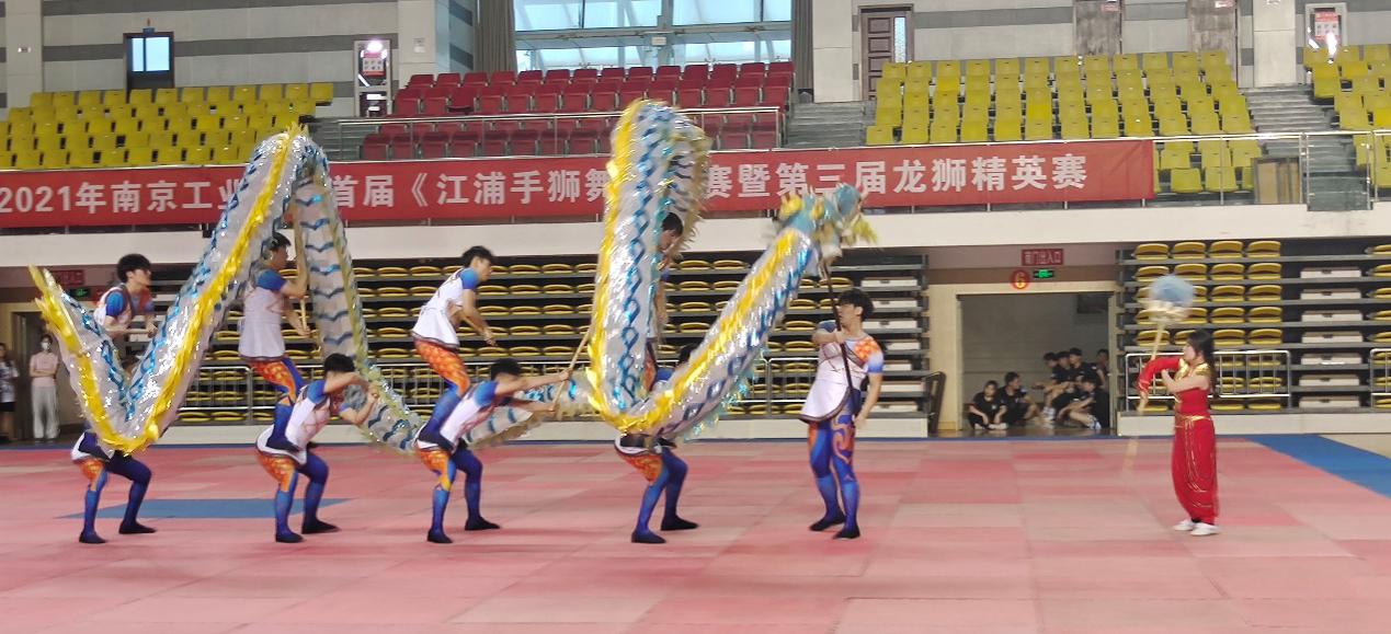 为庆祝中国共产党成立一百周年,增强大学生的综合素质、团队精神和集体凝聚力,由体育学院主办,体育文化发展研究中心手狮教学研究室和校舞龙舞狮俱乐部承办,南京市浦口区文化和旅游局协办的南京工业大学首届江浦手狮舞大赛暨第三届龙狮精英赛于6月2日下午5:30在江浦体育馆拉开序幕。浦口文化与旅游局文化遗产科科长杜万钧、教务处党支部书记、教学评估处处长兼教务处副处长居沈贵、教务处副处长张瑞芳、钱小明、教务处教学运行科吕丹丹、潘晓璐、教务处现代教育中心封顺以及体育学院领导班子等领导老师出席了开幕式。来自21个学院近400名同学参加了此次比赛。