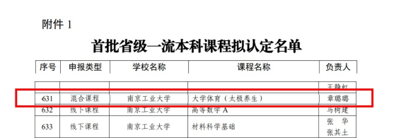 近期,经学校申报、网络公测、专家评审等程序,我院章璐璐老师的本科教学课程——《大学体育(太极养生)》喜获首批省级一流本科课程认定。