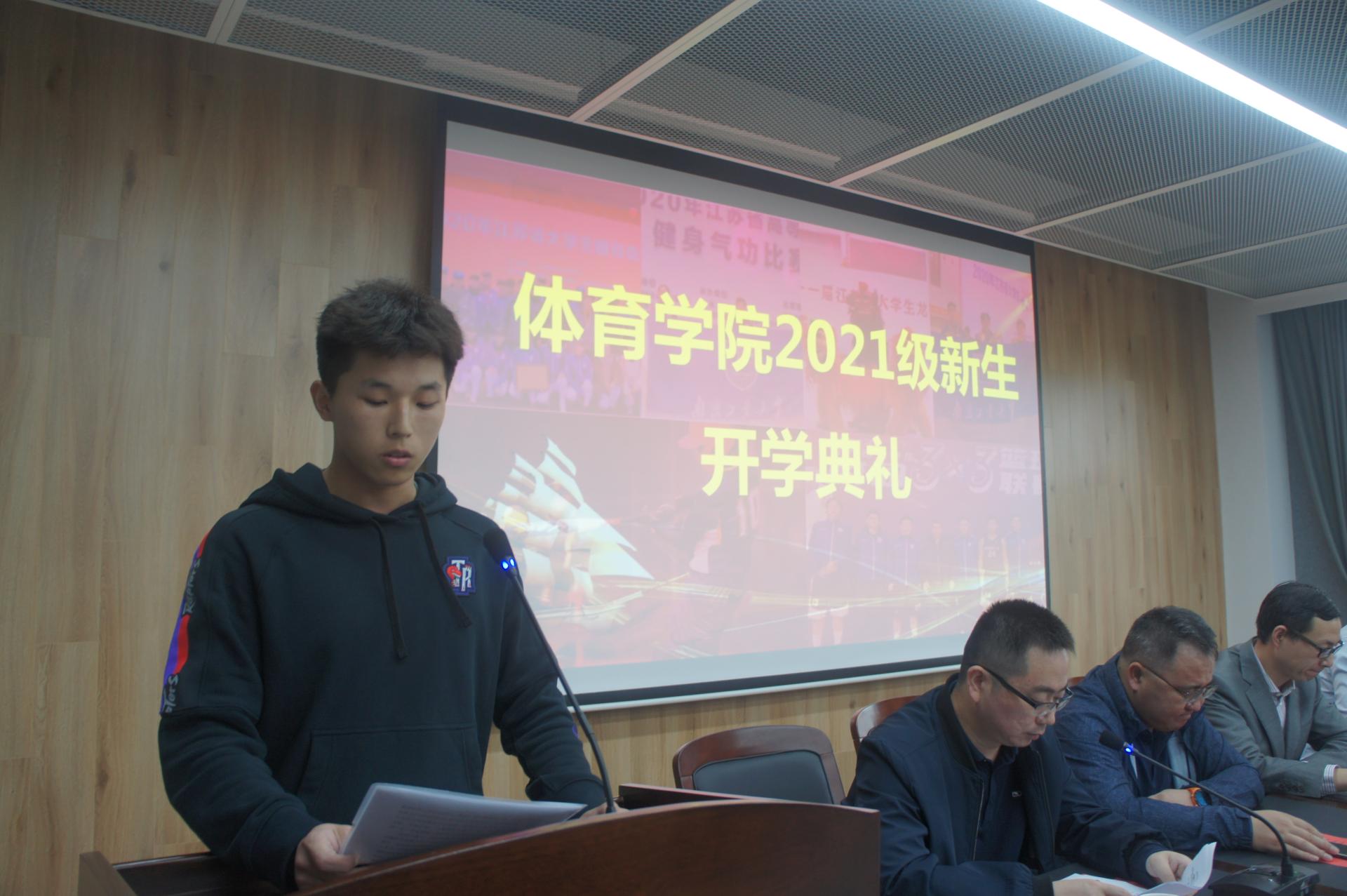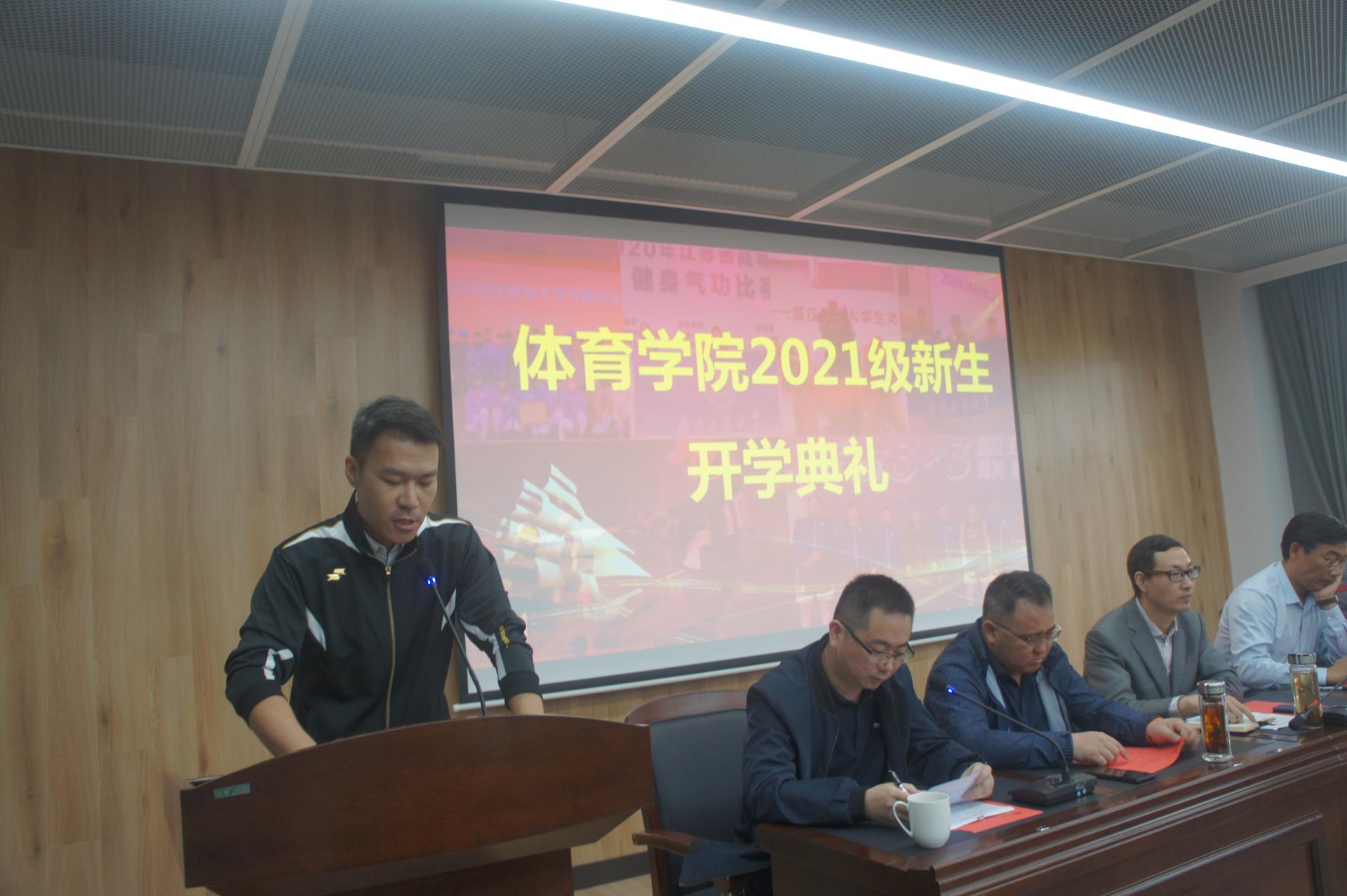 体育学院运动训练系系主任解鑫老师作为教师代表发言,他向新生分享了20年前自己读运动训练专业的体会和感悟,勉励新生学会学习,学会坚持、学会提升,踏实走好人生的道路。2021级本科生班主任钟锵老师在发言中着重强调了规则意识,并举了两个具体的事例来告诉大家一定要遵守国法和校规,教育新生在大学期间严格要求自己。2021级本科生代表龚冠夫、2021级研究生代表伍子贤也相继发言, 表达了对大学生活的憧憬和努力学习、拼搏奋进的决心。