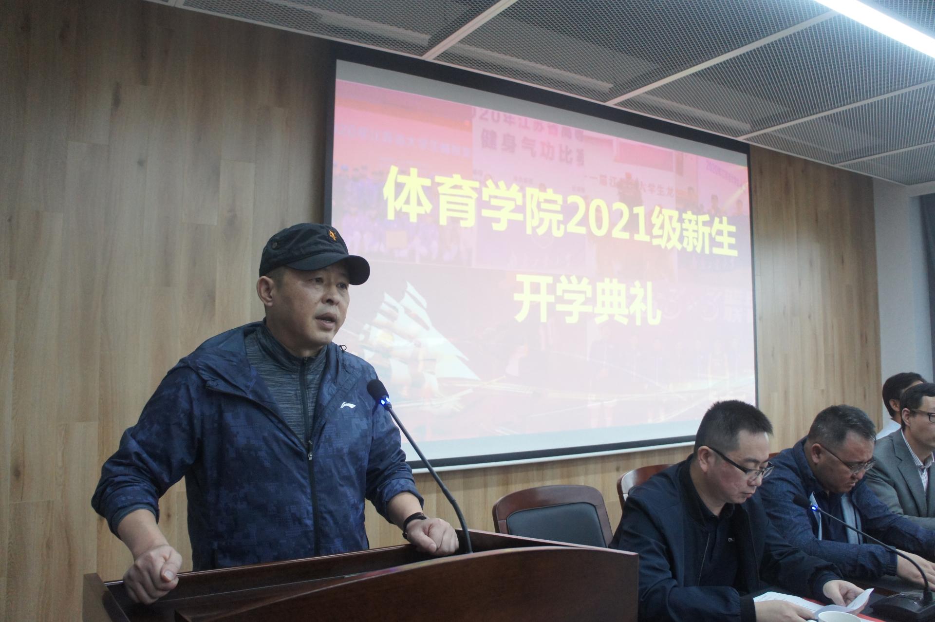 最后,体育学院党总支书记刘涛作总结讲话,刘书记再次表达了对2021级新生的欢迎,分享了个人学习心得,希望同学们有信念、有理想、有担当,提出了很多具有很强操作性的建议,期望同学们做好规划,不断进取。