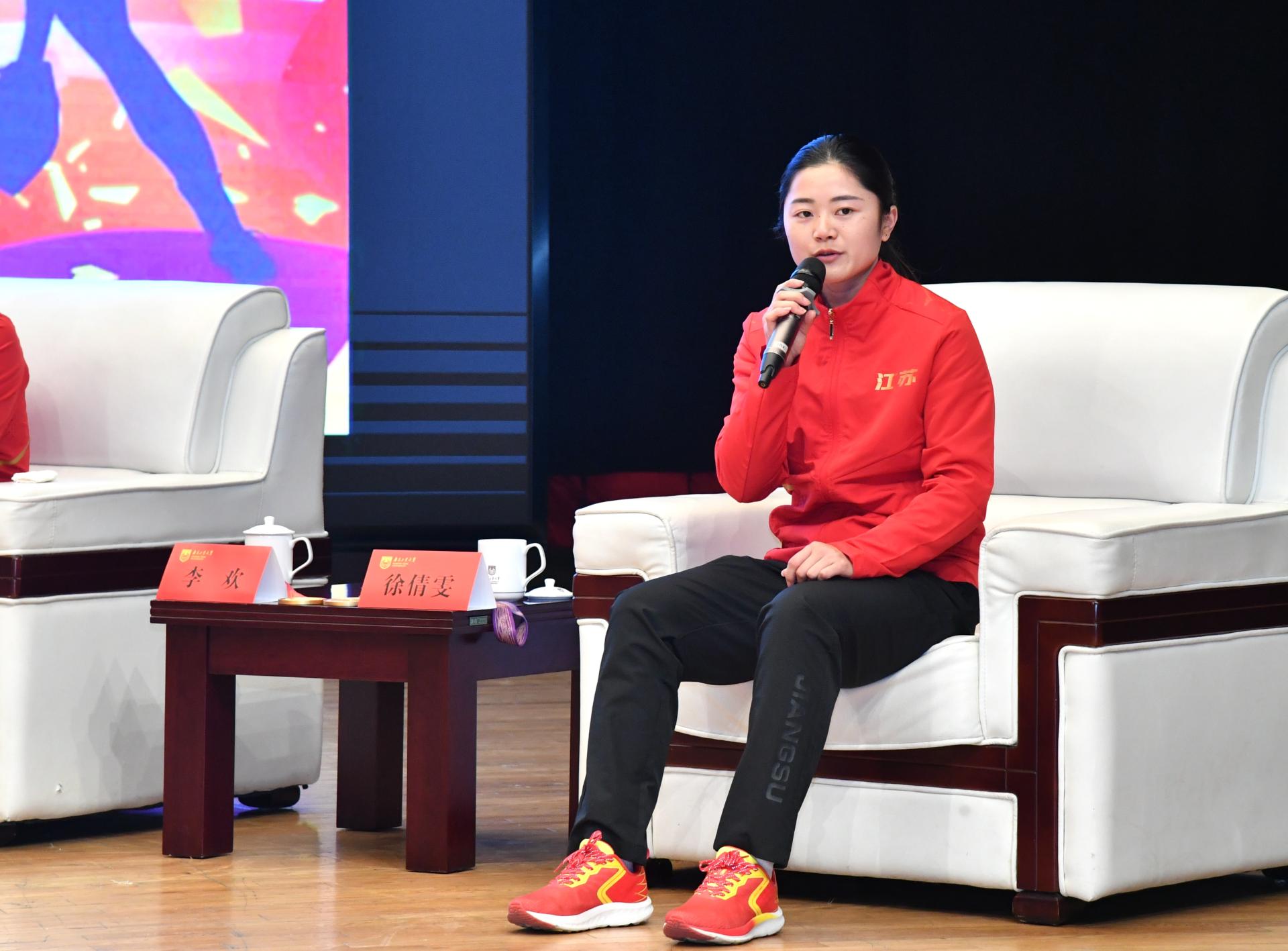公开课上,宋秋元总教练为与会师生深情讲述了南工大江苏省女子垒球队20年来从零起步,从无到有,由弱变强,从生存到辉煌,逐步实现“63111”的光荣历程。蔡协清、李欢、徐倩雯三位老队长们为大家分享了自己和团队的奋斗经历,她们饱含热泪的讲述向学校师生们传递了自信坚强、不惧困难、勇敢拼搏、团结协作的南工大江苏女垒故事,以实际行动阐述“奉献、拼搏、坚韧、协同” 的南工大江苏女垒精神。