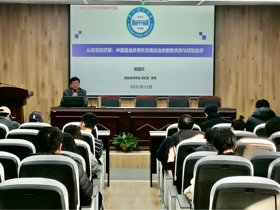 12月21日下午,南京体育学院杨国庆校长到体育学院一楼报告厅讲授了一堂题为《从东京到巴黎:中国备战参赛东京奥运会的制胜优势与经验启示》的精彩学术讲座,学院全体青年教师和研究生参加。讲座由体育学院院长张天峰主持。