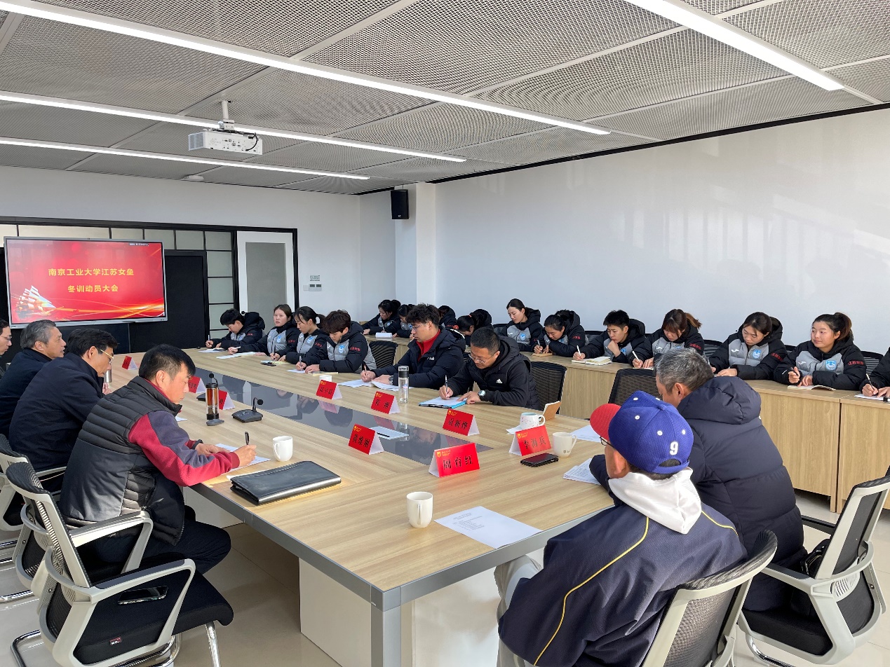 12月21日,南京工业大学体育学院在亚青体育学院二楼会议室召开南工大江苏女垒队全体冬训动员大会。副校长巩建鸣、体育学院党总支书记刘涛、院长张天峰,以及南工大江苏女垒主教练宋秋元、黄维刚、助理教练周育红、女垒全体队员和相关人员参加动员大会,会议由张天峰院长主持。