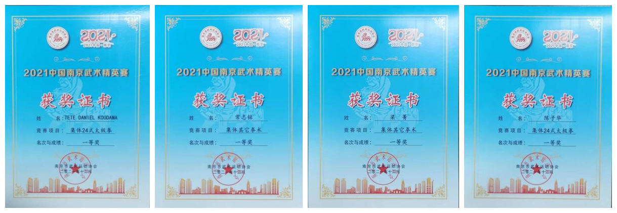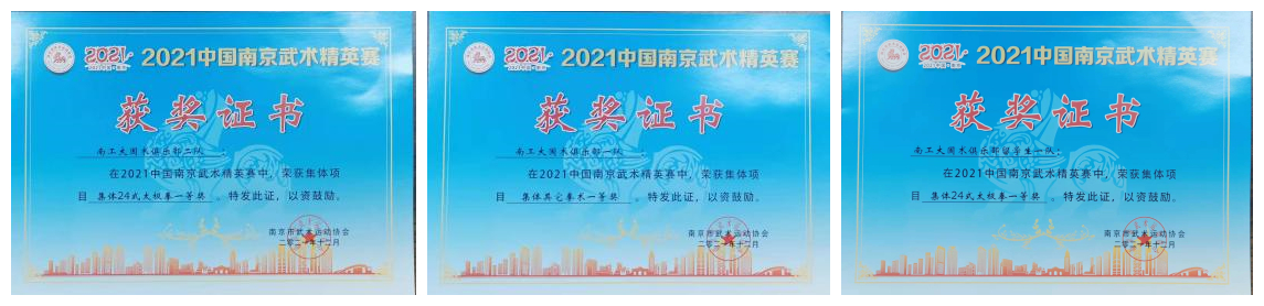 由南京市体育总会主办、南京市武术运动协会承办的2021年南京武术精英赛(网络集体赛)暨2022 年江苏省第二十届运动会群众组武术比赛选拔赛已圆满结束,共有213支队伍2300名运动员参赛,比赛采用视频+线下评分的模式进行。我校国术俱乐部组织了37支队伍240名运动员参赛,最终获集体24式太极拳一等奖3队、二等奖10队、三等奖9队;集体42式太极剑二等奖1队;集体其它拳术一等奖3队、二等奖7队、三等奖4队的优异成绩。