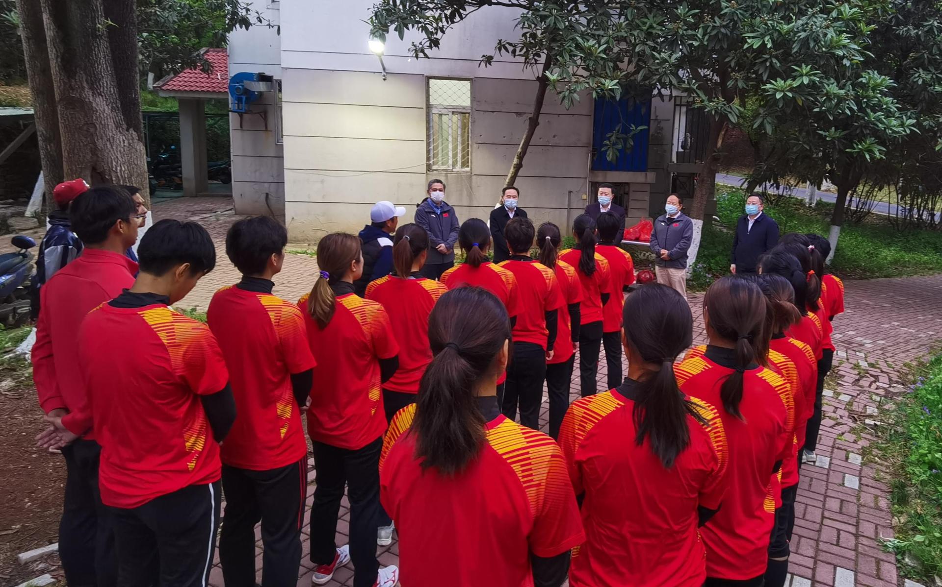 4月15日下午,校领导乔旭、崔益虎、李世收、巩建鸣到驻地亲切看望冬训结束返校的南工大江苏女垒队员。