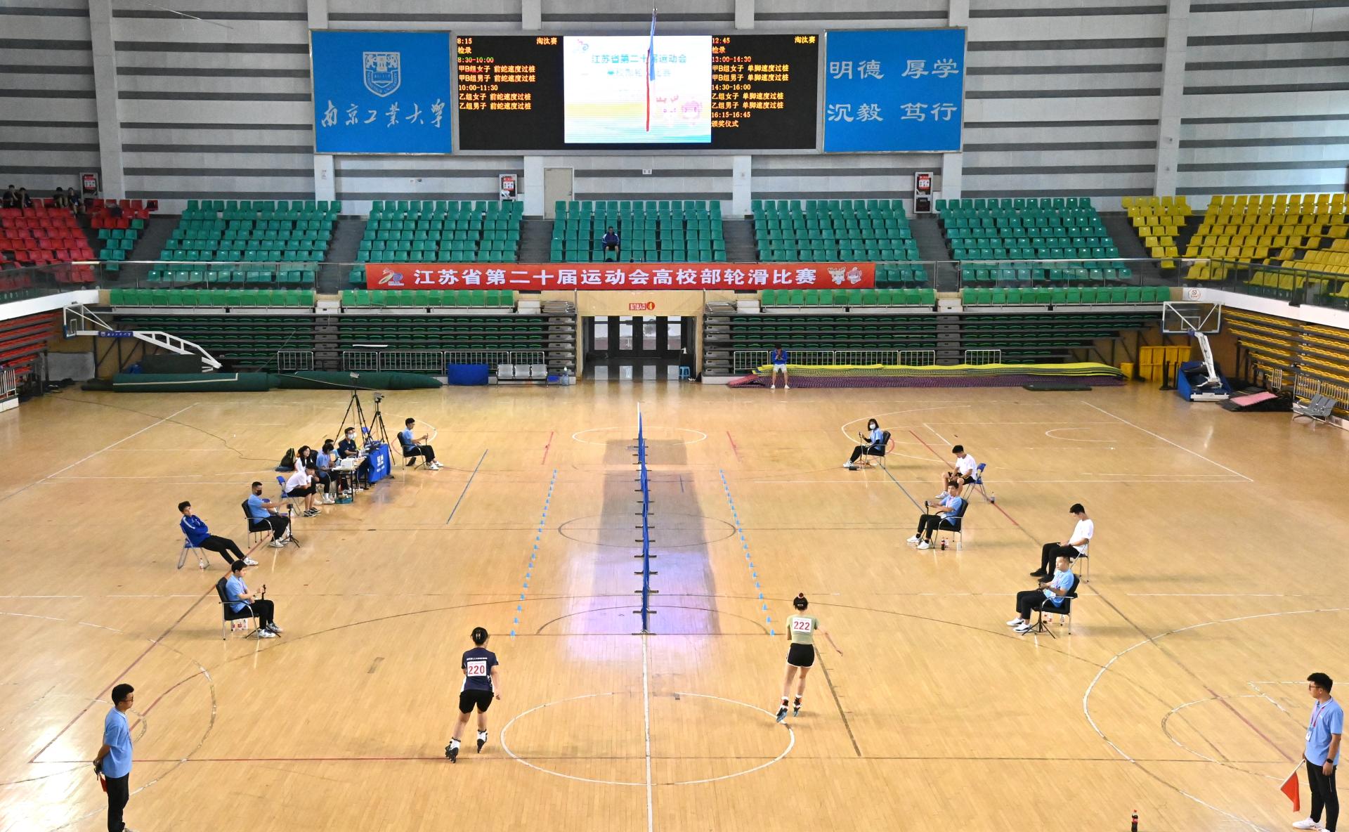 7月17日—18日,江苏省第二十届运动会高校部轮滑比赛在南京工业大学行健体育馆正式开赛。此次比赛由江苏省教育厅和江苏省体育局主办,南京工业大学承办。来自南京大学、东南大学、南京工业大学、江苏大学、苏州市职业大学等省内28所高校共202名运动员、教练员参赛。比赛分为甲B组(本科院校普通组)和乙组(高职高专院校组),设置男子、女子组单脚速度过桩、双鱼速度过桩、前蛇速度过桩共6个竞赛项目。我校获得了2金3银,团体总分第一的优异成绩。