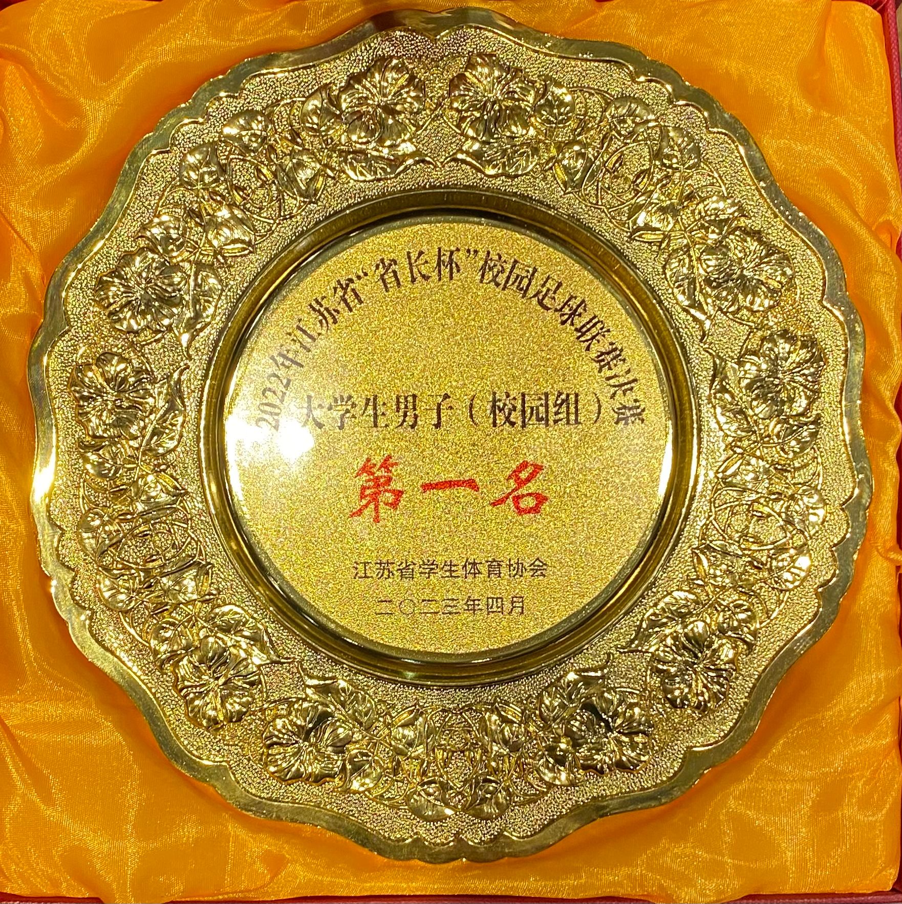 2022年江苏省“省长杯”青少年校园足球联赛大学男子组比赛于4月2日-4月7日在盐城昱丰足球基地正式开赛。来自省内8所高校代表队为了冠军展开激烈争夺,我校男子足球队以全胜战绩最终夺冠!