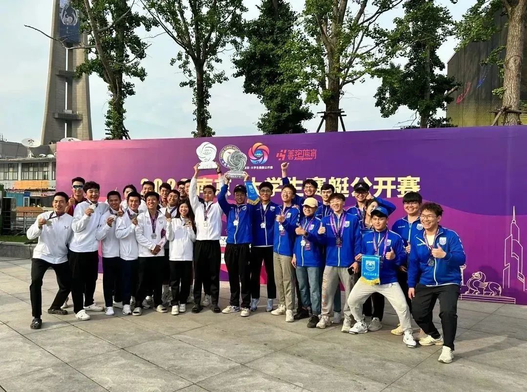 以艇会友,竞逐秦淮。我校大学生龙舟队在茆登华教练的带领下,赛前克服种种困难,积极训练备战,比赛中团结拼搏,奋楫逐浪,夺得在宁高校男子八人单桨有舵手1000米竞速赛第三名、男子八人单桨有舵手4500米追逐赛第二名,并获得在宁高校男子八人单桨有舵手团体总分第二名。