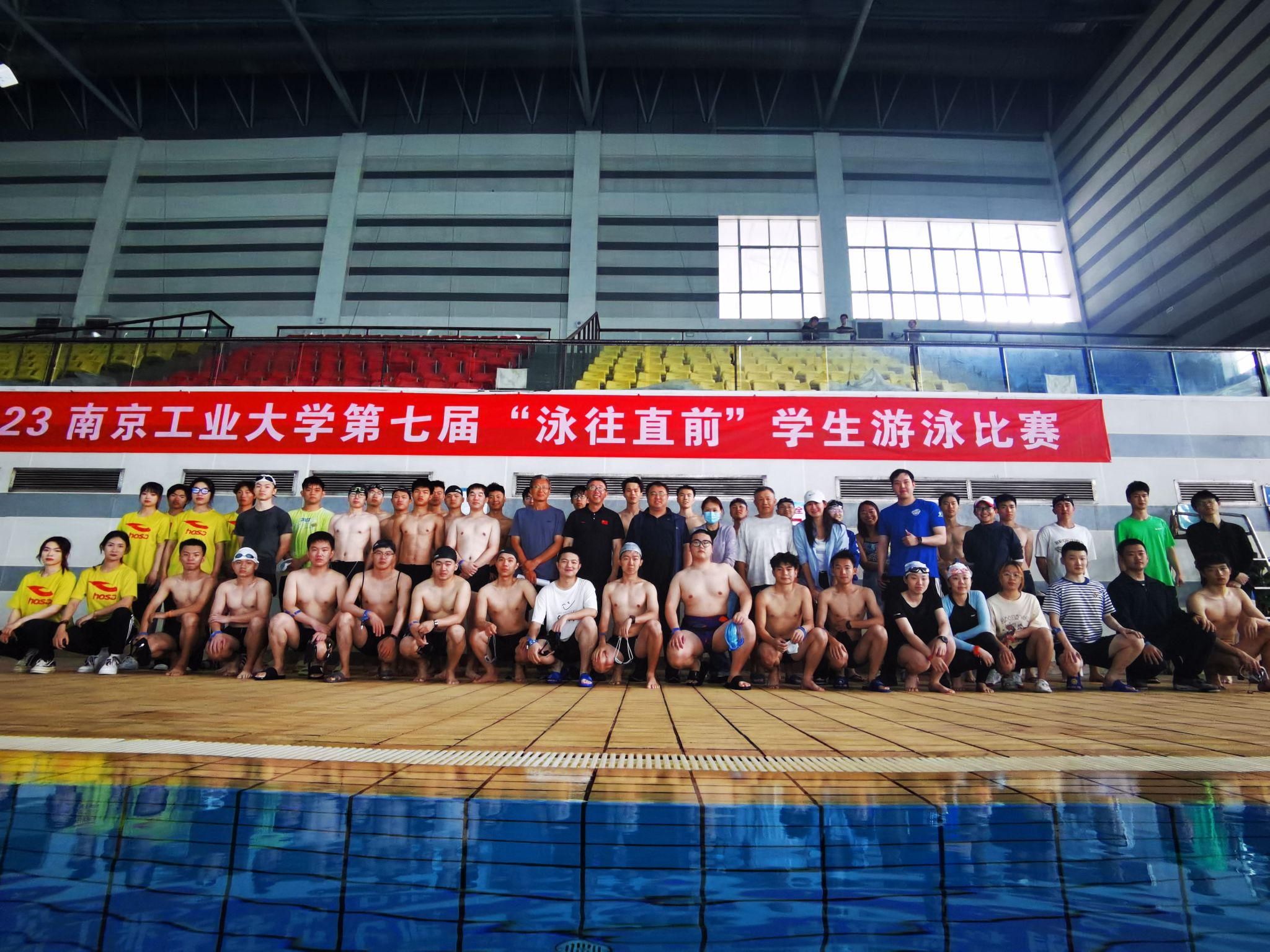 5月27日上午,由体育学院和校团委主办、江苏五台山体育场馆管理运营有限公司江北分公司承办的校第七届大学生游泳比赛在南京工业大学游泳馆举行。来自20个学院80名学生报名参赛。