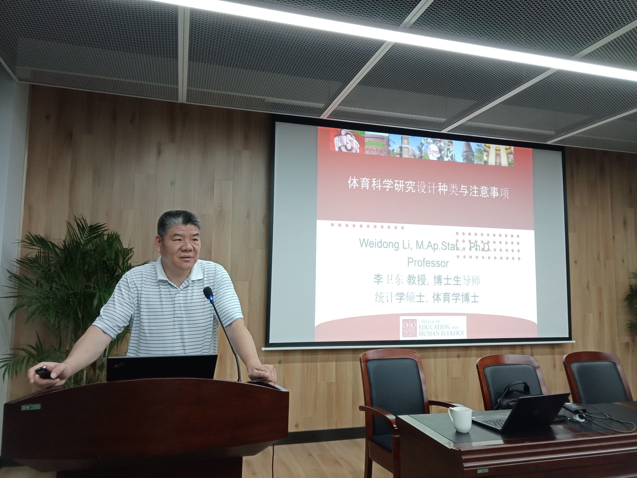 6月7日下午,美国国家运动与体育科学会研究院士、俄亥俄州立大学人体科学系终身教授李卫东应邀在体育学院一楼报告厅作题为《体育科学研究设计种类与注意事项》学术报告。学院全体本科生、研究生以及部分青年教师参加报告会。报告会由体育学院李国副院长主持。