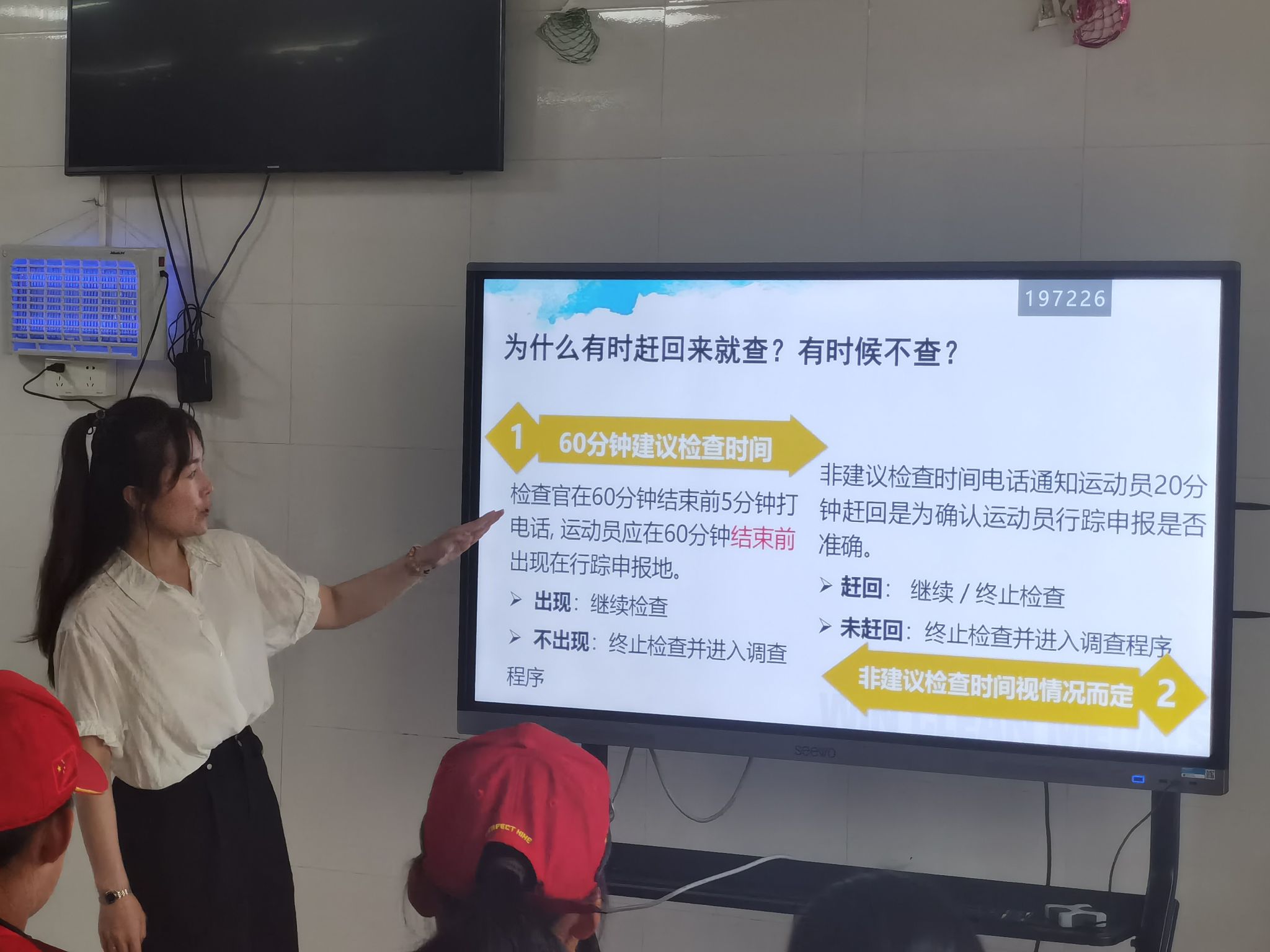 伍玥洁老师对反兴奋剂工作“六项规定”进行了深入解读,详细阐述了兴奋剂的定义和常见禁用物质、生理及心理危害,以及对于食品、药品、营养品使用的注意事项等,并通过实际案例分享的方式与运动员们互动。