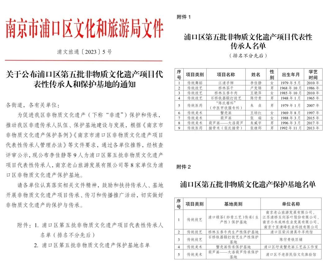 近日,南京市浦口区文化和旅游局发文,公布浦口区第五批非物质文化遗产项目代表性传承人名单,我院李佳静老师成为“江浦手狮”非遗项目第五代传承人。