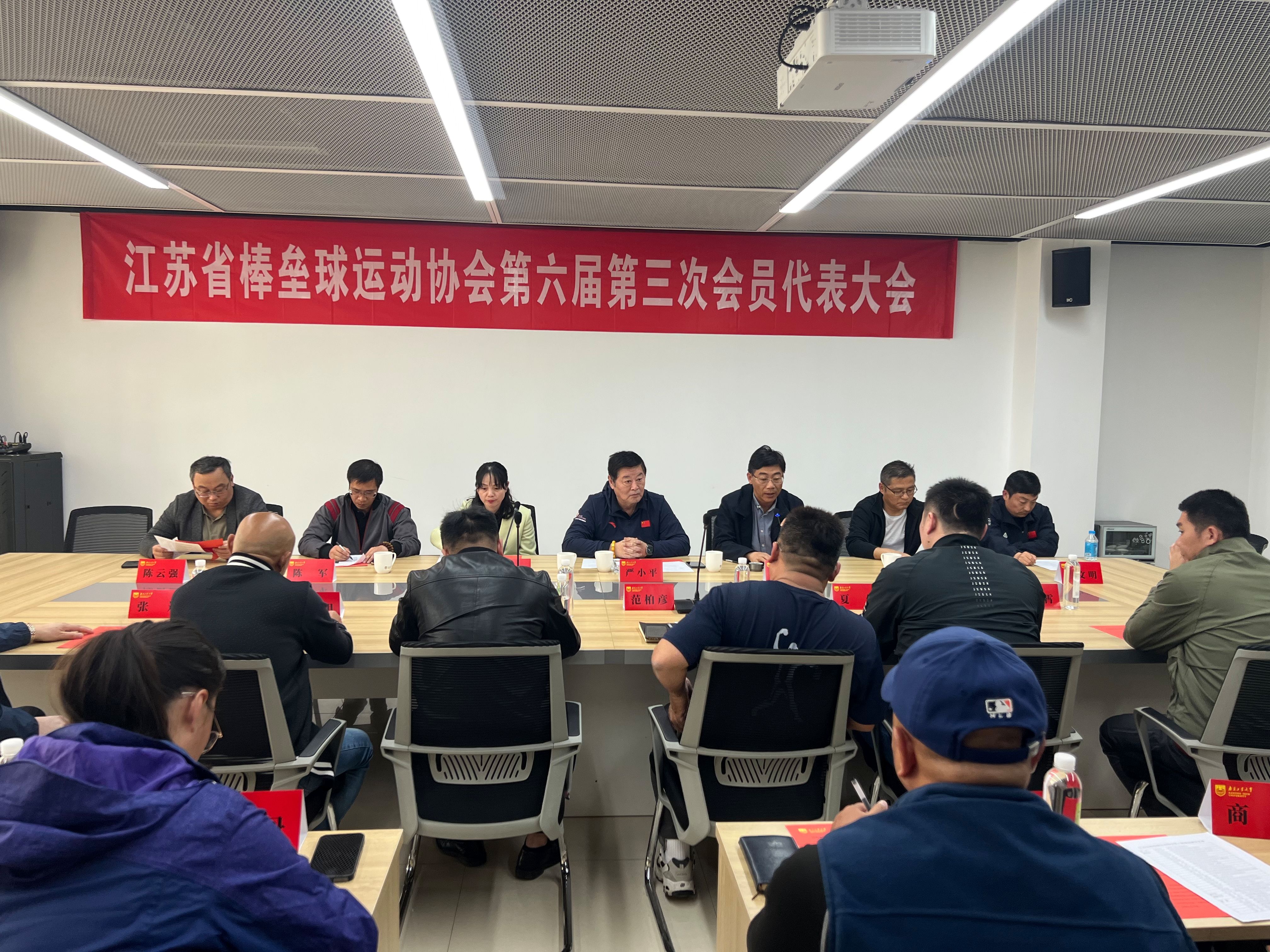 4月13日下午,江苏省棒垒球运动协会第六届第三次会员代表大会、江苏省棒垒球运动协会第六届理事会在我校体育学院亚青办公楼209会议室举行,出席理事会的领导和嘉宾有:江苏省棒垒球运动协会常务副会长(兼秘书长)严小平、江苏省棒垒球运动协会副会长、南京工业大学体育学院院长张天峰、常州市体彩中心副主任吴霞、南京金陵科技学院体育部主任沈辉、南京工业大学体育学院副院长陈军、江苏建筑职业技术学院副主任李文明、宜兴市周铁小学校长陈云强。江苏省协会理事、各市棒垒球协会负责人、各市会员代表,共30余人参加会议。会议由张天峰院长主持。