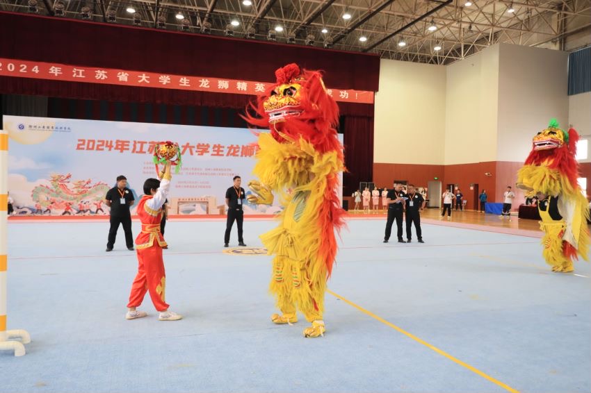 5月31日-6月2日,2024年江苏省大学生龙狮精英赛在徐州工业职业技术学院体育馆举办。我校龙狮队在领队体育学院陈军副院长带领下,王鸣骏和严燕两位教练指导下,团结协作,奋勇拼搏,取得4金1铜,团体总分第二的优异成绩。