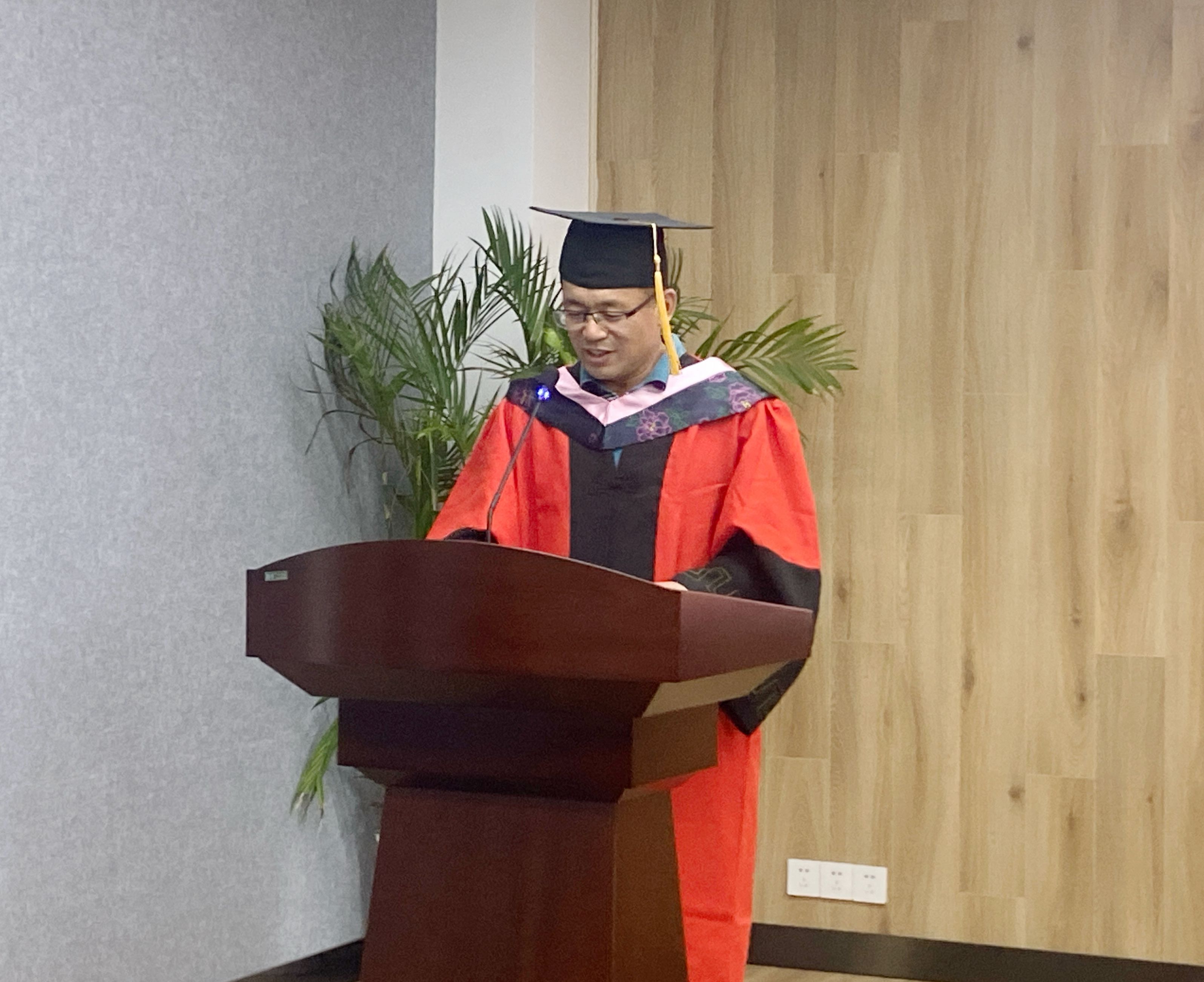 导师代表李加奎教授为毕业生致临别赠言,他代表全体教师向毕业生们致以美好祝福,同时分享了自己的人生经验。李教授希望毕业生们面对困难和挑战要保持平和的心态和坚定的信念,相信自己的能力和潜力,勇于追求自己的梦想和目标,同时也要学会与他人合作,共同创造更加美好的未来。