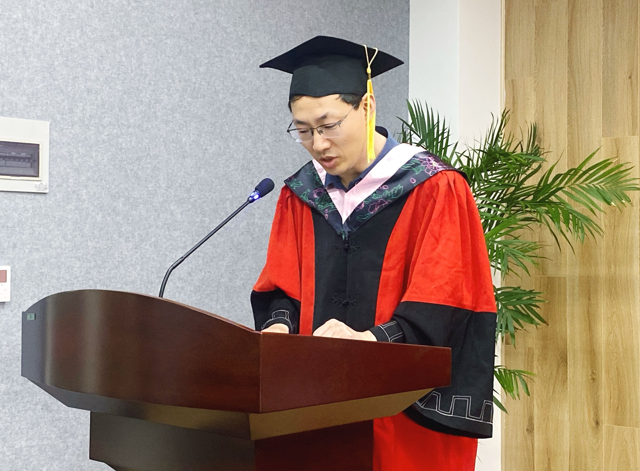 优秀毕业生范进阳同学代表全体毕业生发表感言,他表达了对母校培养、师生关爱、同学鼓励的感激与深情,分享了自己的校园生活、成长经历、体育科研经历和未来规划。