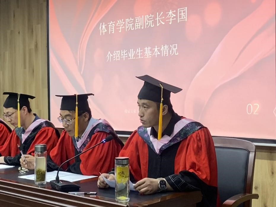 李国副院长介绍了2024届硕士毕业生的基本情况,宣读《全日制专业型研究生体育硕士学位的授予决定》,宣布优秀毕业生名单,并对三年来同学们的表现给予充分肯定,表达了对他们的美好祝愿。