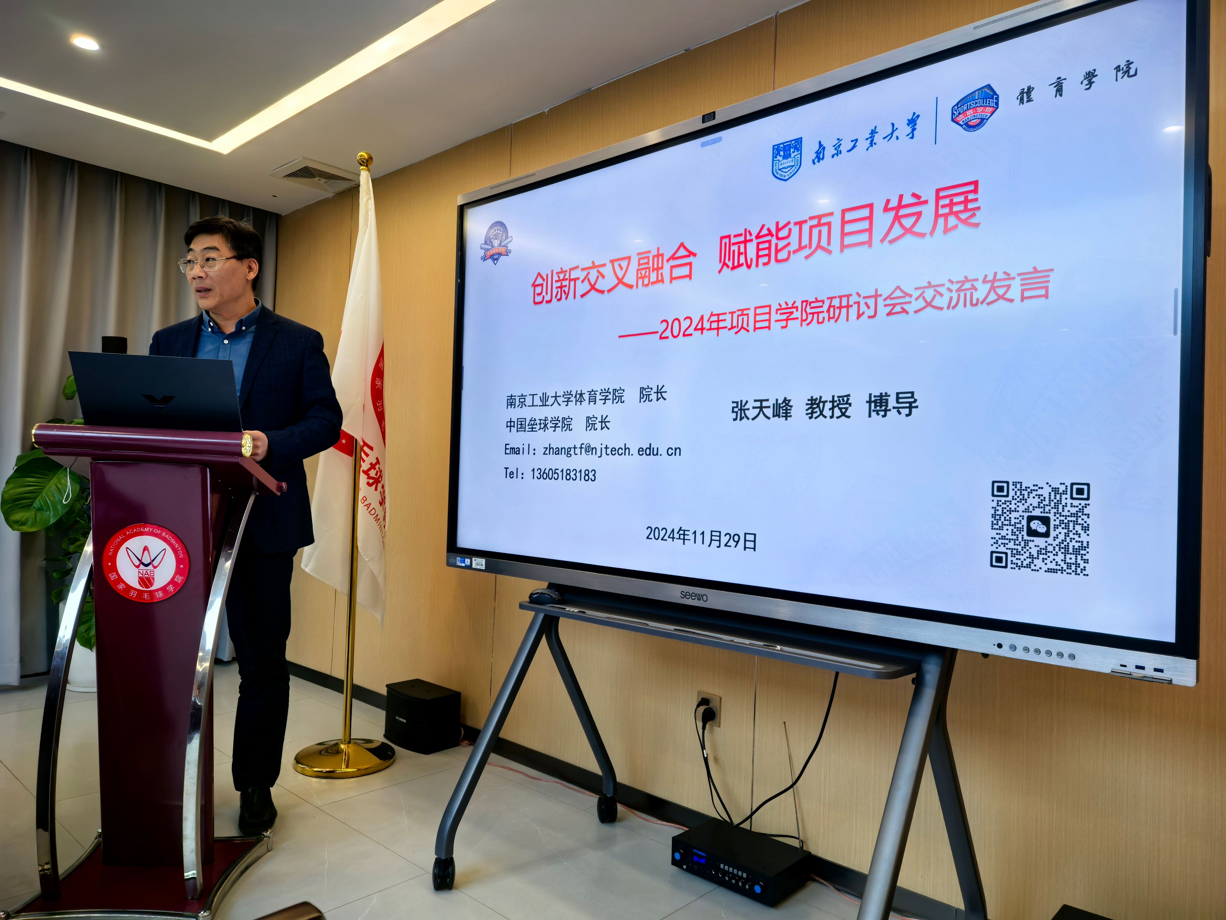在2024年项目学院建设研讨会上,张天峰院长代表中国垒球学院作了主题为《创新交叉融合 赋能项目发展》的交流发言,从“体教融合、省队校办”创新竞技体育人才培养新模式、“体工融合、产教融合”学科交叉融合开启项目发展新征程、“教学相长、科研并进”激活行业人才高质量发展新动能、“社会服务、对外交流”点亮国内国际友好合作交流新名片等四个方面,详细介绍了中国垒球学院在人才培养、学科交叉、科学研究、合作交流等方面的经验做法和取得的成效。
