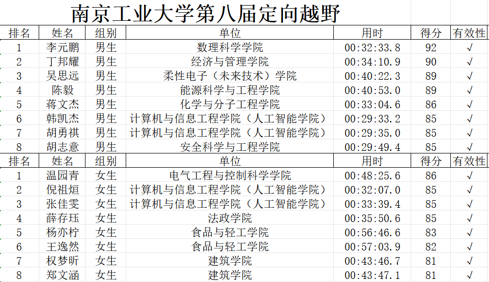 12月7日下午,由体育学院主办、校红十字协会协办、校定向越野俱乐部(协会)承办的南京工业大学第八届定向越野比赛在行健田径场成功举办!