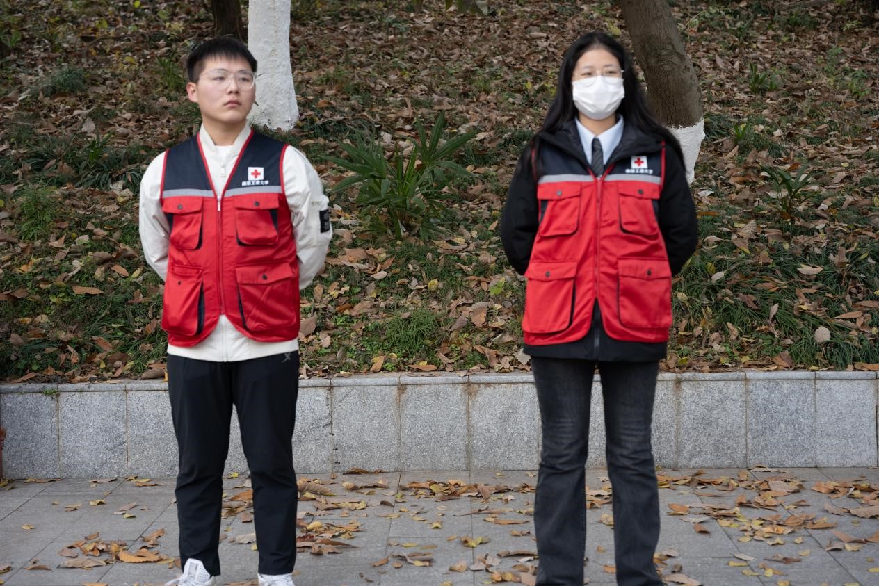 比赛中,校红十字协会的同学在服务站时刻观察路况,一旦有突发情况或者出现受伤人员,他们会拿出必备医疗包进行相应的救助,为赛事成功举办提供了有力保障。