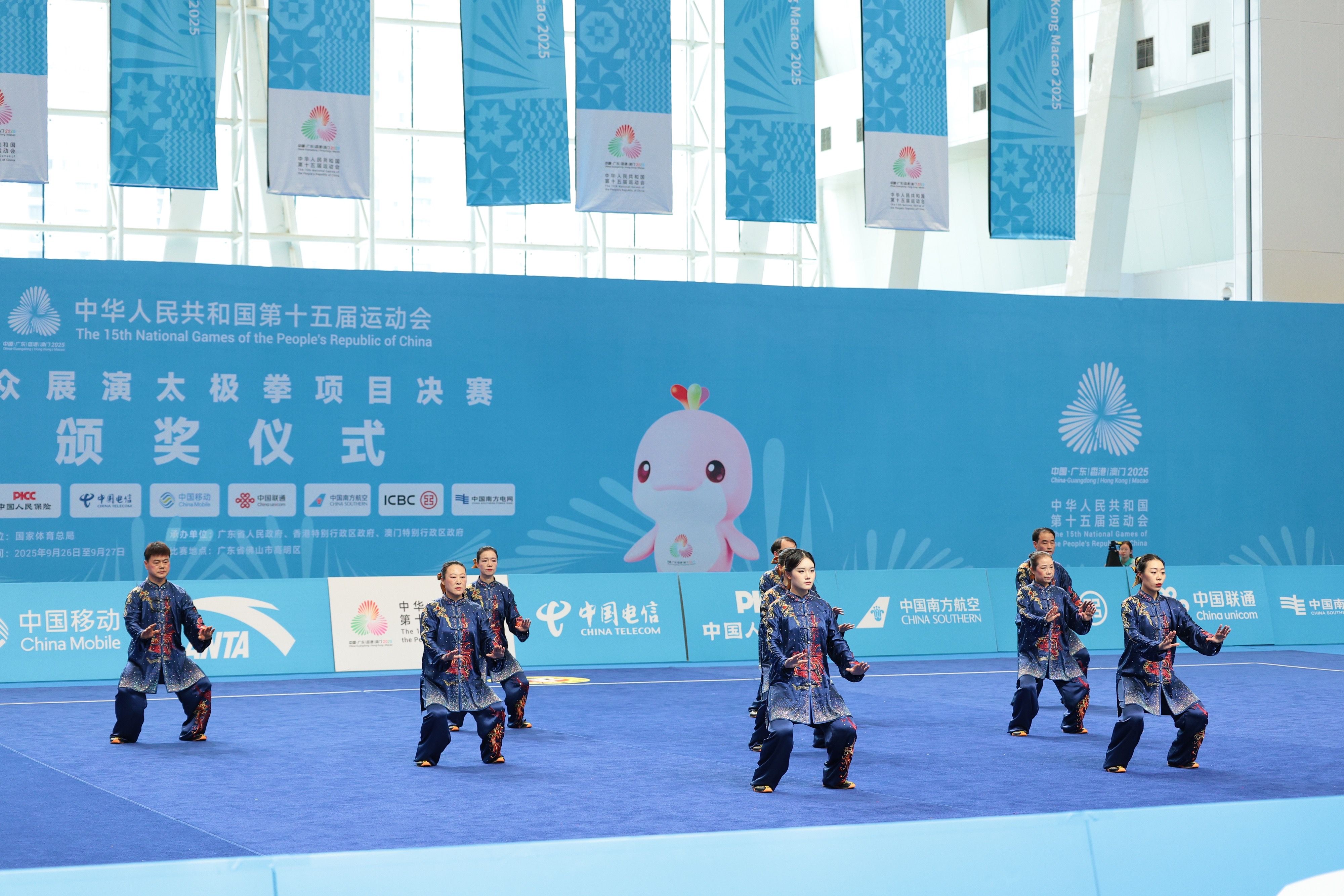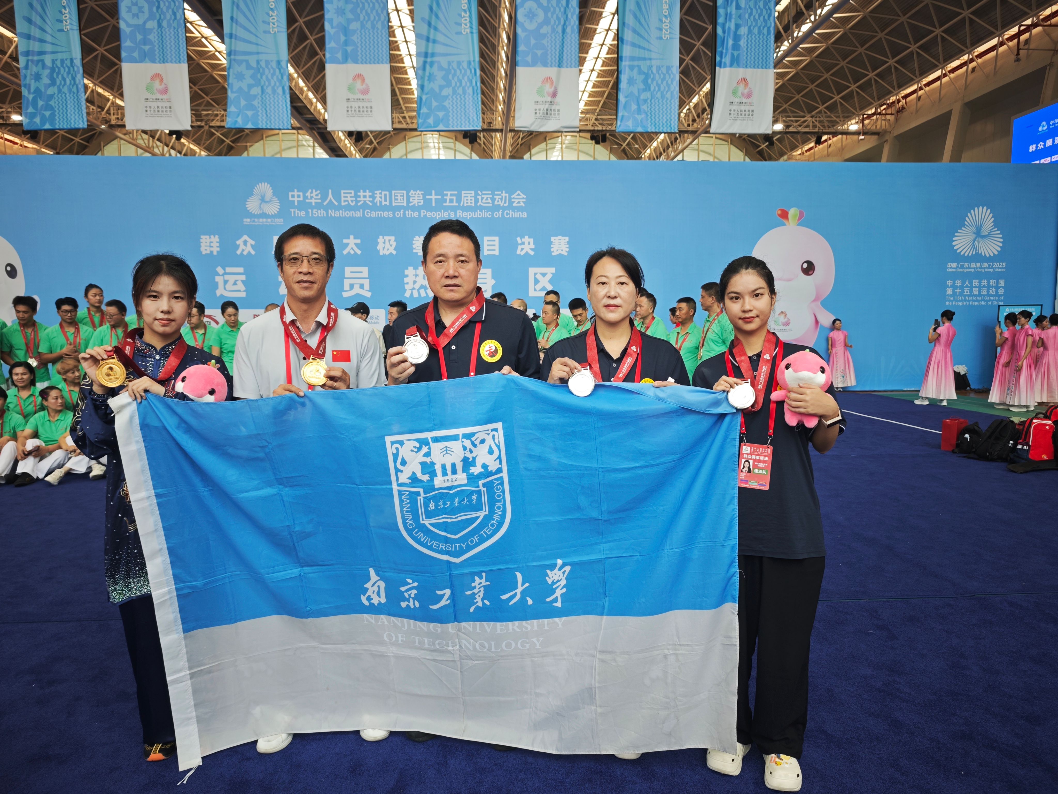 在9月27日广东佛山举办的第十五届全运会群众展演太极拳项目决赛中,南京工业大学5名师生代表江苏队出战,凭借精湛的技艺和稳定的发挥,一路过关斩将,最终勇夺集体42式太极剑冠军、集体42式太极拳亚军,取得1金1银的优异战绩,为江苏省和学校赢得了荣誉。
