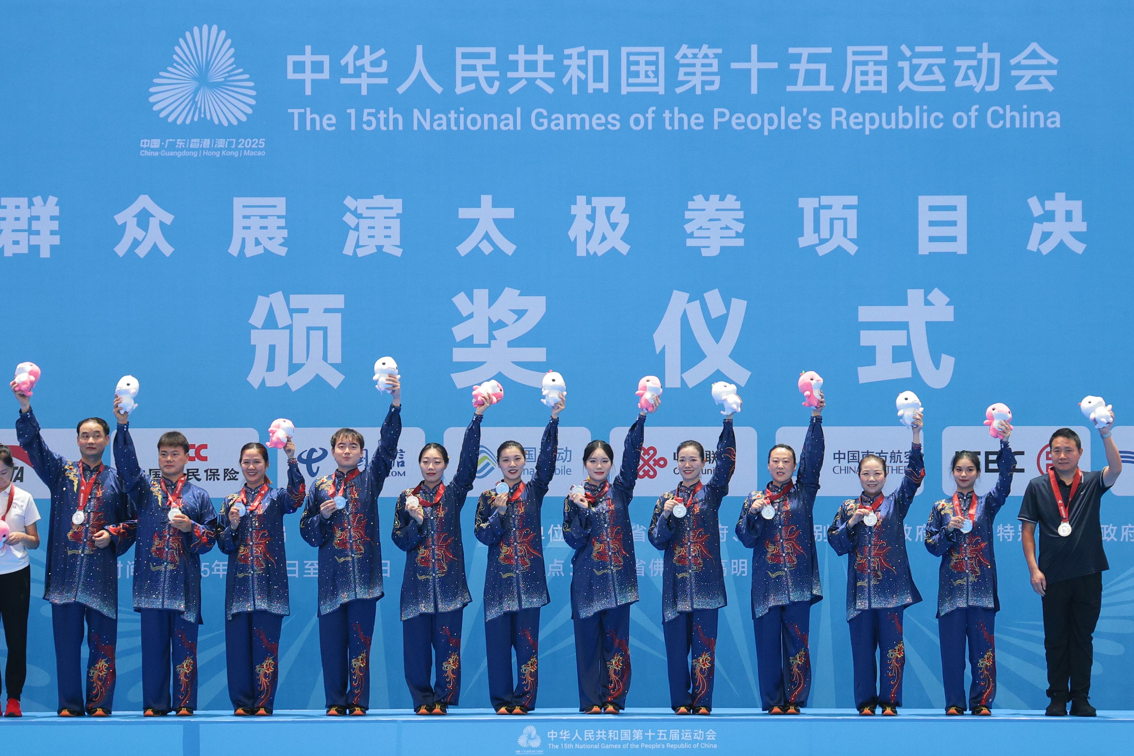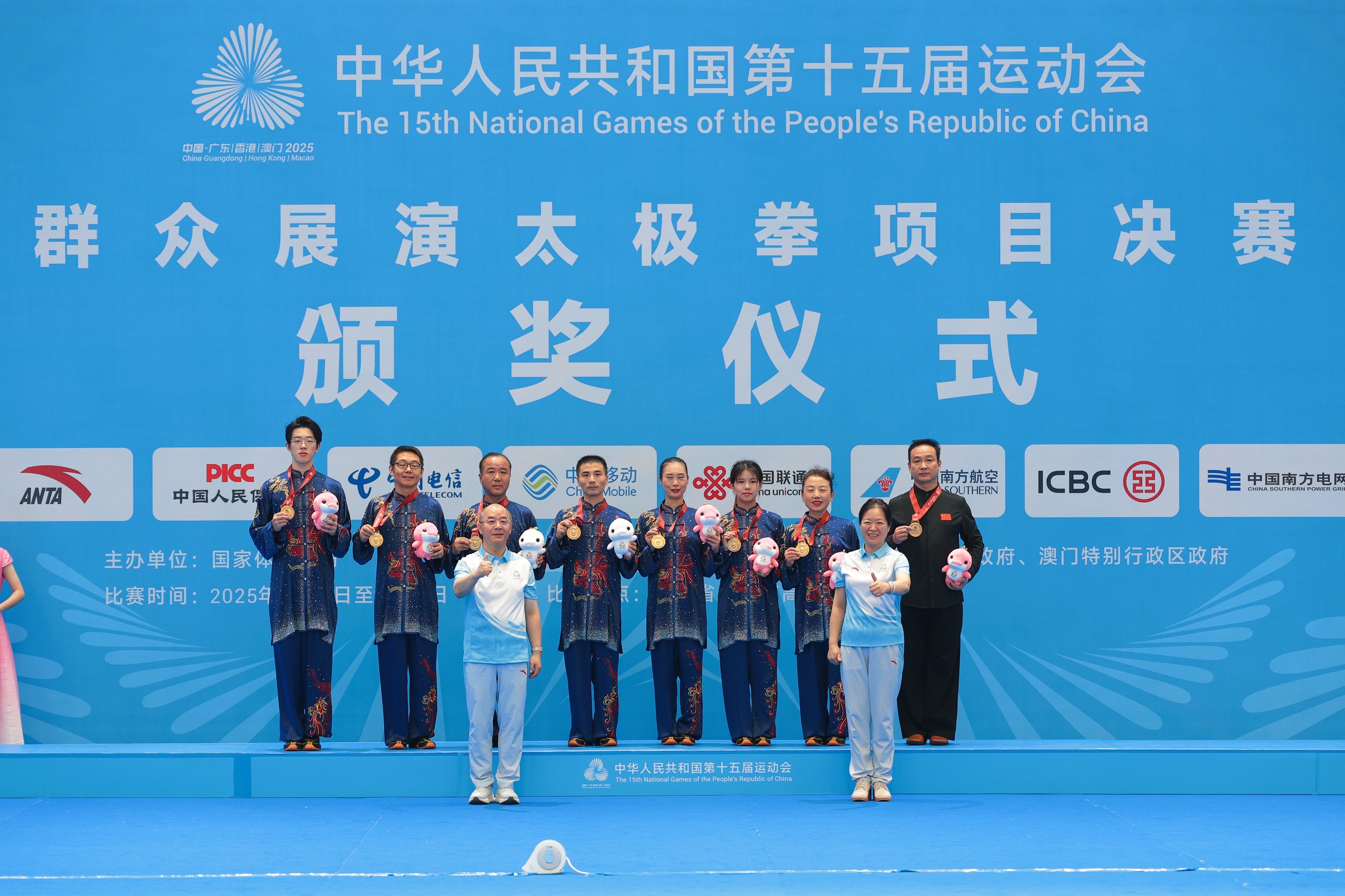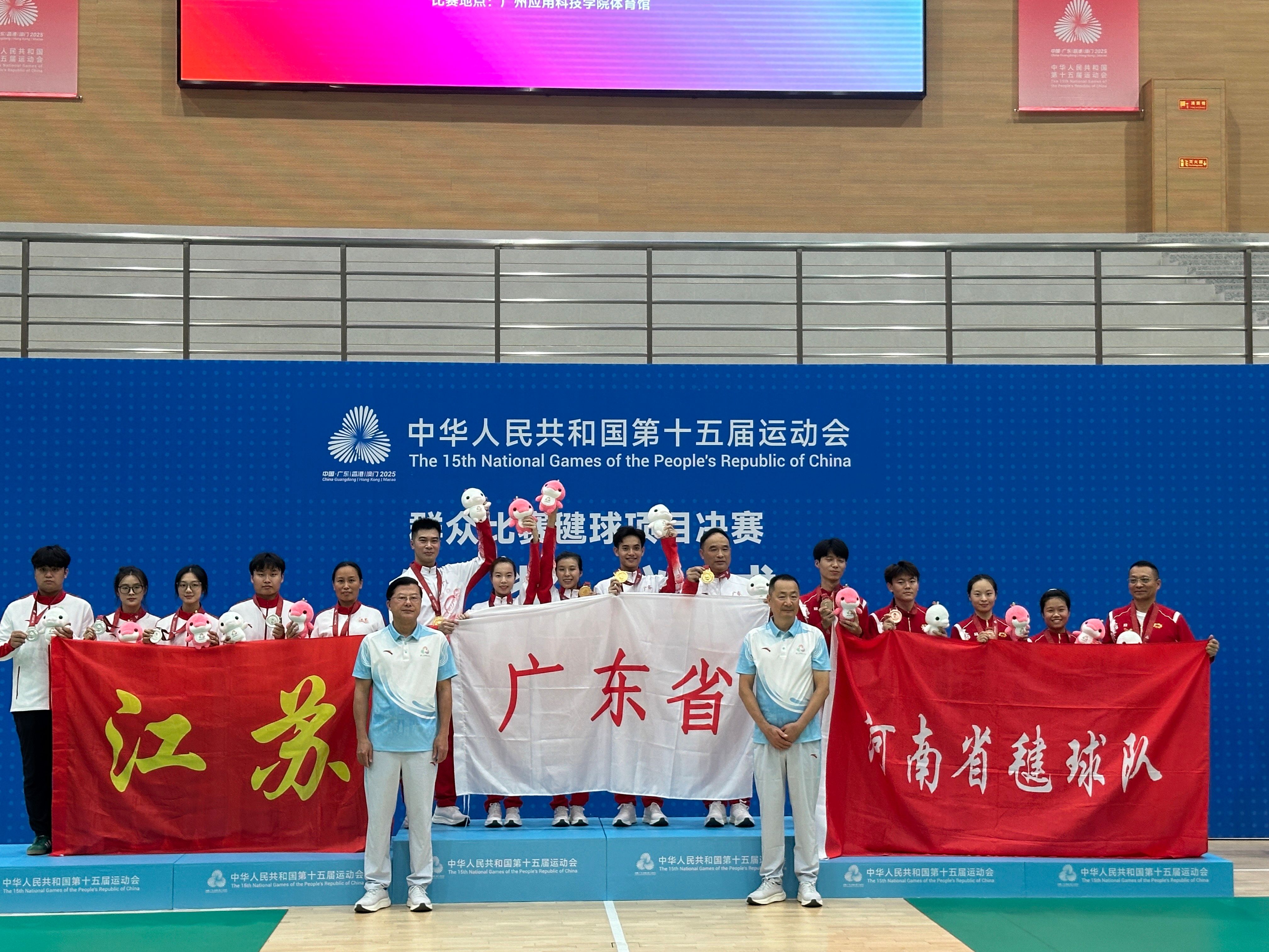 此次学校共有28名师生运动员参加第十五届全运会,其中竞技比赛中,共夺得女子垒球、女子手球、男子棒球3枚金牌、1枚银牌(1名同学代表广东省女子手球队),群众比赛中,夺得五人篮球男子A组1枚金牌、集体四十二式太极剑1枚金牌、集体四十二式太极拳1枚银牌、毽球4×30秒混合团体接力比赛1枚银牌。