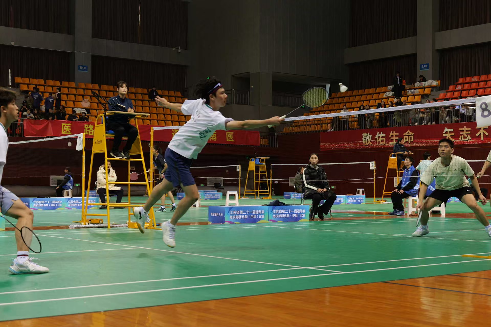 11月26日,由江苏省教育厅主办、南京医科大学承办的江苏省第二十一届运动会高校部羽毛球(甲组)比赛圆满落幕。我校大学生羽毛球队在郭守康教练带领下,团结协作,奋勇拼搏,夺得4金1铜、团体总分58分高居榜首的优异成绩,创造了我校羽毛球队参加省运会历史最佳战绩。