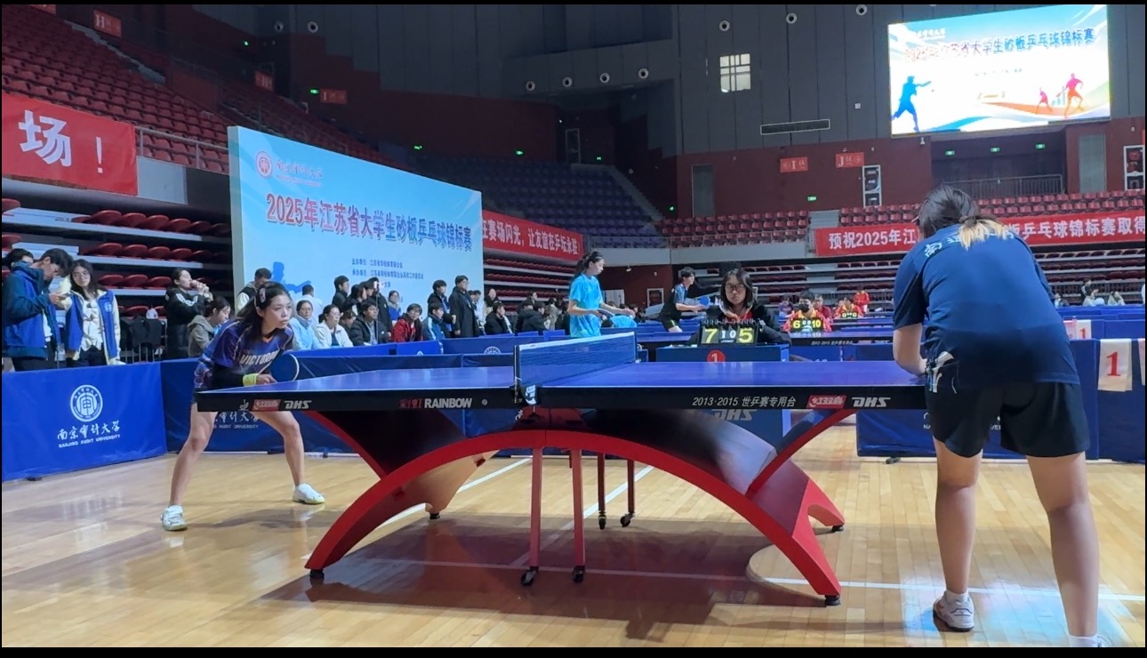 11月27日至30日,2025年江苏省砂板乒乓球锦标赛于南京审计大学成功举办。我校高水平乒乓球队选派优秀队员出征,经过四天紧张激烈的角逐,队员们在领队陈军老师和教练曹婧老师带领下,奋勇拼搏、表现出色,不仅成功卫冕女子团体项目,蝉联冠军,男子团体也实现重要突破。学校代表队凭借整体的优异发挥,勇夺3金,团体总分第二名的优异成绩。