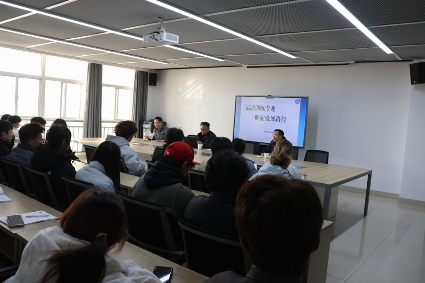 本次座谈会以“运动训练专业职业生涯规划”为主题,聚焦学生成长关切,搭建高效沟通平台。孙欣荣副院长结合自身从业经验与体育行业发展趋势,系统梳理了运动训练专业的多元职业发展路径。他指出:除升学、留学等传统发展方向外,体育教师、专业队教练、社会体育俱乐部培训师等岗位均为专业对口选择,而随着我国体育产业的蓬勃发展,体育赛事运营、运动康复指导、体育用品研发等领域已成为该专业学生就业的“蓝海市场”,蕴含着广阔的职业发展空间。