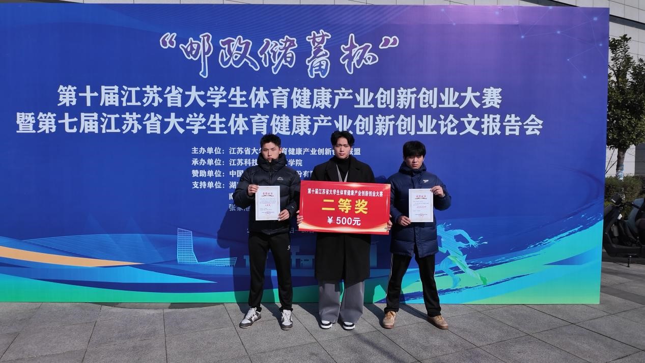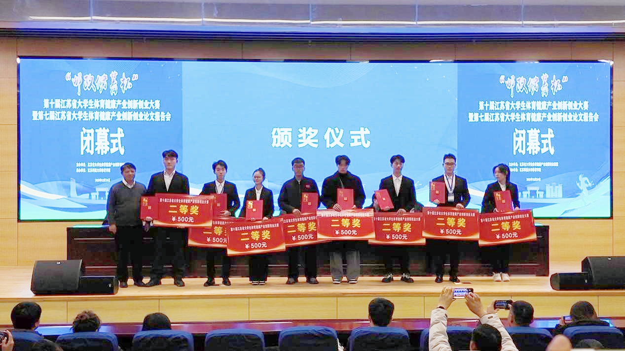 本次大赛由江苏省高校体育教学指导委员会、江苏省大学生体育健康产业创新创业联盟主办,扬州大学体育学院承办。经过各校初选,共有来自全省17所高校的32支本研代表队参加。经过复赛项目报告、现场答辩、路演、专家评审等环节层层选拔共有15支队伍进入决赛,最终,由我院副院长李国教授任领队,青年教师胡若晨、陶源青青、解涛瑞老师共同指导学生联合参赛项目获得二等奖,胡若晨、解涛瑞、陶源青青获得“优秀指导老师”。