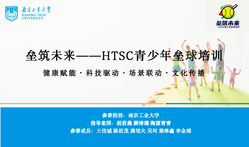 由我院研究生王佳诚、陈祖茂、龚冠夫、熊琳鑫、吴坷和经管学院研究生李金瑶联合打造的“垒筑未来——HTSC 青少年垒球培训”项目,专注7-18岁青少年垒球培训,项目由南京工业大学孵化,依托学校运动训练重点学科与中国垒球学院权威资源,秉持南京工业大学“奉献、拼搏、坚韧、协同”女垒精神为内核,以“健康赋能(Healthy)、科技驱动(Technology)、场景联动(Scene)、文化传播(Culture)” (HTSC)为核心理念,构建集分层培训、赛事运营、数据服务与公益实践于一体的青少年垒球综合服务平台。