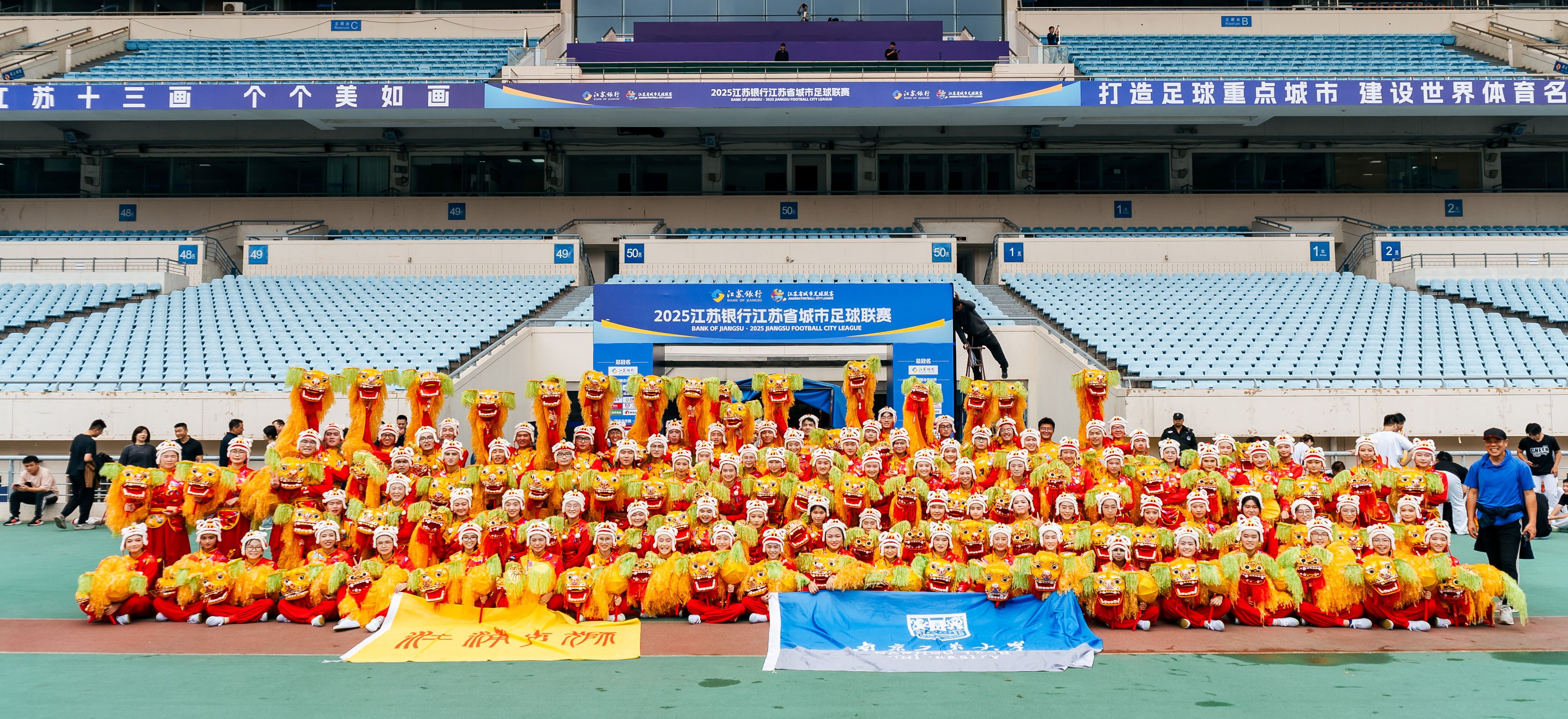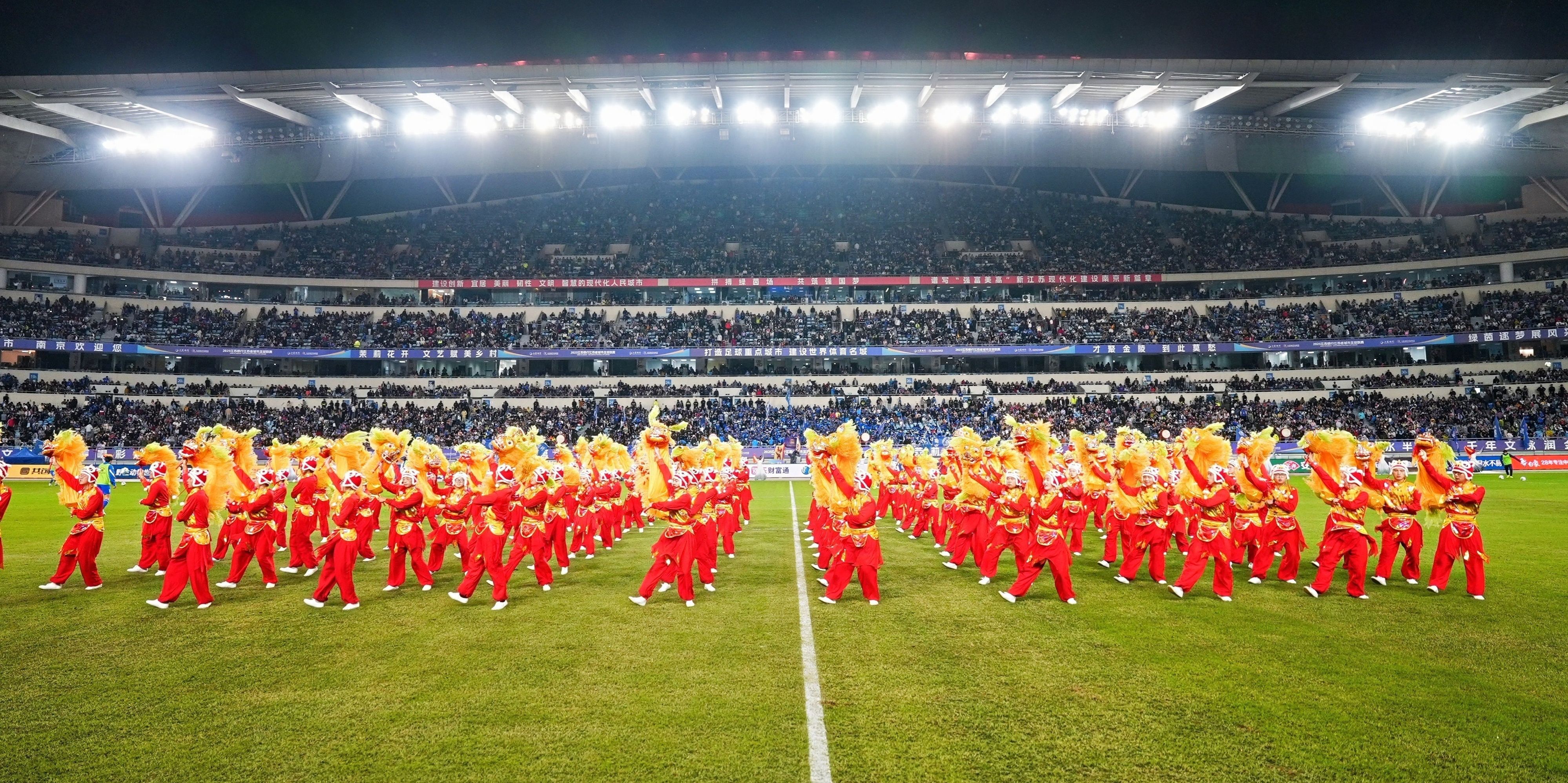 团队还通过手狮俱乐部建设,培养专项人才,在做好传承的基础上不断创新江浦手狮的表达形式,积极参加校内外展示展演。团队通过俱乐部持续不断的培养高水平爱好者的技艺能力,先后有近300名高级爱好者成为江浦手狮表演人才,他们经常服务于学校重要大型体育赛事和地方政府开展的主题文化展示活动中,受到广泛的好评。2025年,手狮俱乐部的同学共演出了28场,其中“苏超”半决赛中场表演和江苏省第二届城市足球对抗赛的开场表演,就有超过12万名观众欣赏了这项具有170多年的地方文化瑰宝。
