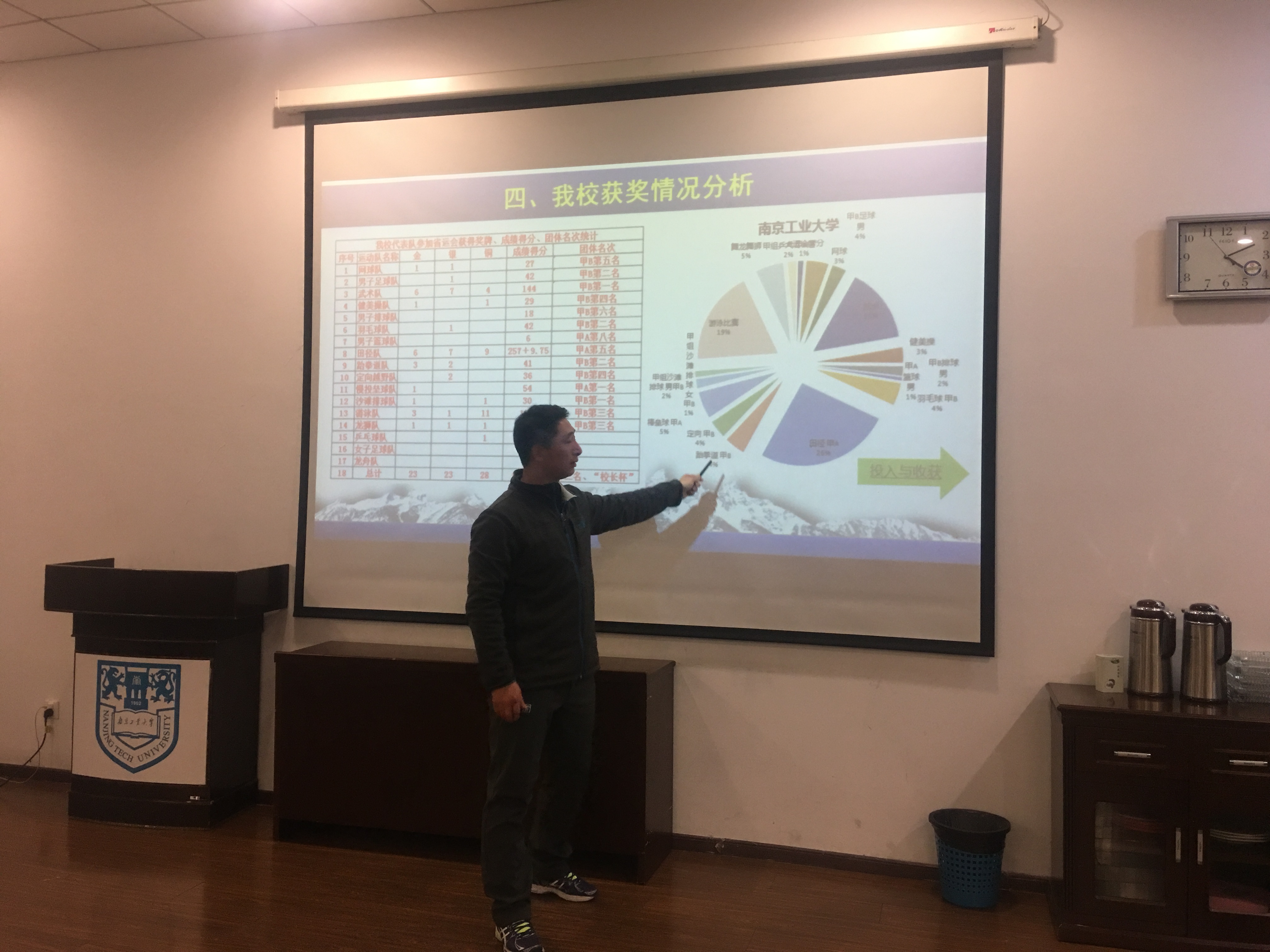 会上,运动队管理办公室主任於鹏老师从教练员聘任、组队备战、比赛得失、兄弟高校对比、经验与不足等几方面全面总结了我校参加第十九届省运会(高校部)比赛情况。认为我校获得全省高校第三名的历史最好成绩,既归因于学校领导的高度重视和亲切关怀,也离不开兄弟学院和职能部门的大力支持,更是在全体教练员和运动员辛勤努力下取得的。