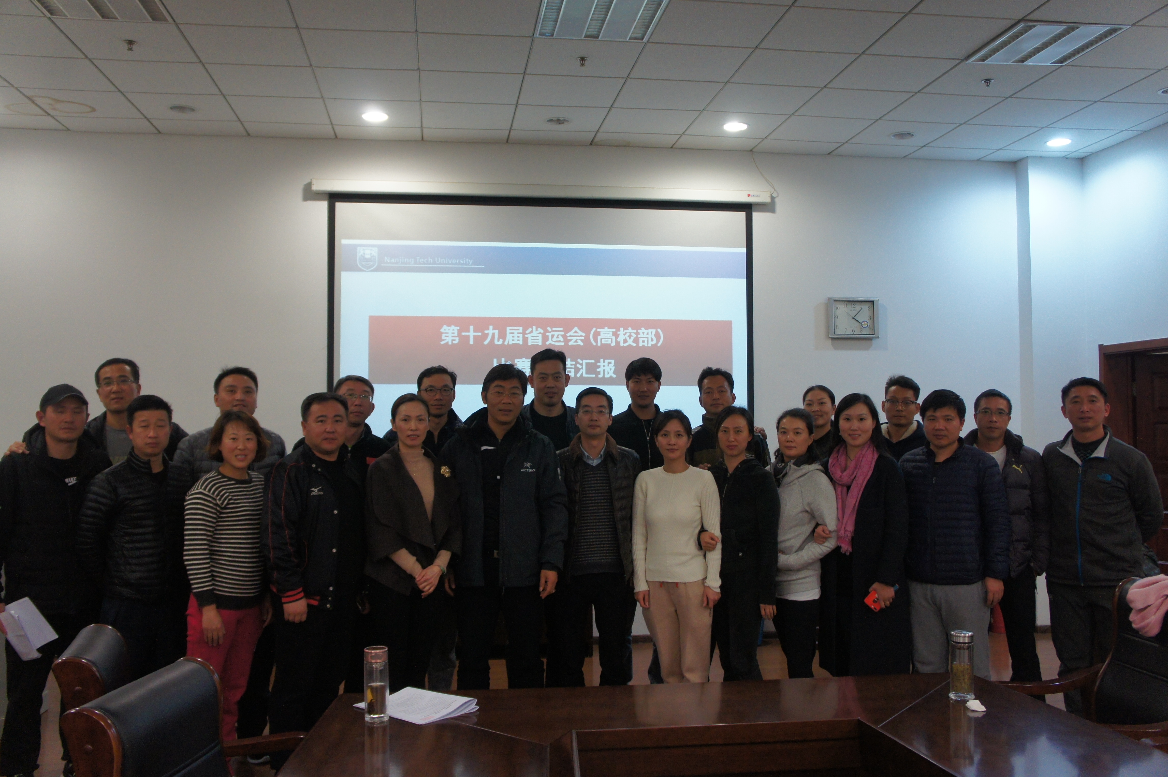 2018年12月5日下午,体育部在体育馆VIP3会议室召开第十九届省运会(高校部)总结汇报会。体育部党总支书记方建强,体育部主任、党总支副书记张天峰,副主任孙欣荣、陈晓霞,主任助理、办公室主任陈军以及全体运动队教练员参加。会议由运动队管理办公室主任於鹏主持。