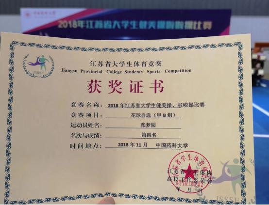 11月17日,2018年江苏省大学生健美操啦啦操比赛在中国药科大学成功举办。我校健美操队凭借动作新颖的动作编排,完美的完成斩获甲B组啦啦操项目第四名。