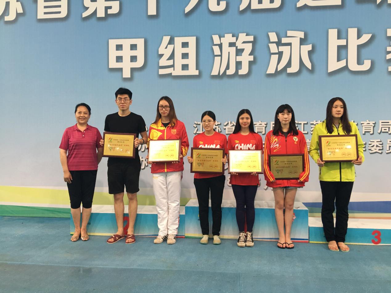 6月10日至6月12日,我校游泳队在领队於鹏老师、教练员车益民老师的带领下,代表学校赴南京大学仙林校区参加江苏省第十九届运动会高校部游泳比赛,此次比赛由江苏省教育厅、江苏省体育局主办,江苏省学生体协高校工作委员会协办,南京大学承办,吸引了来自东南大学、中国矿业大学、南京航空航天大学等25所高校代表队近300多名运动员参加。