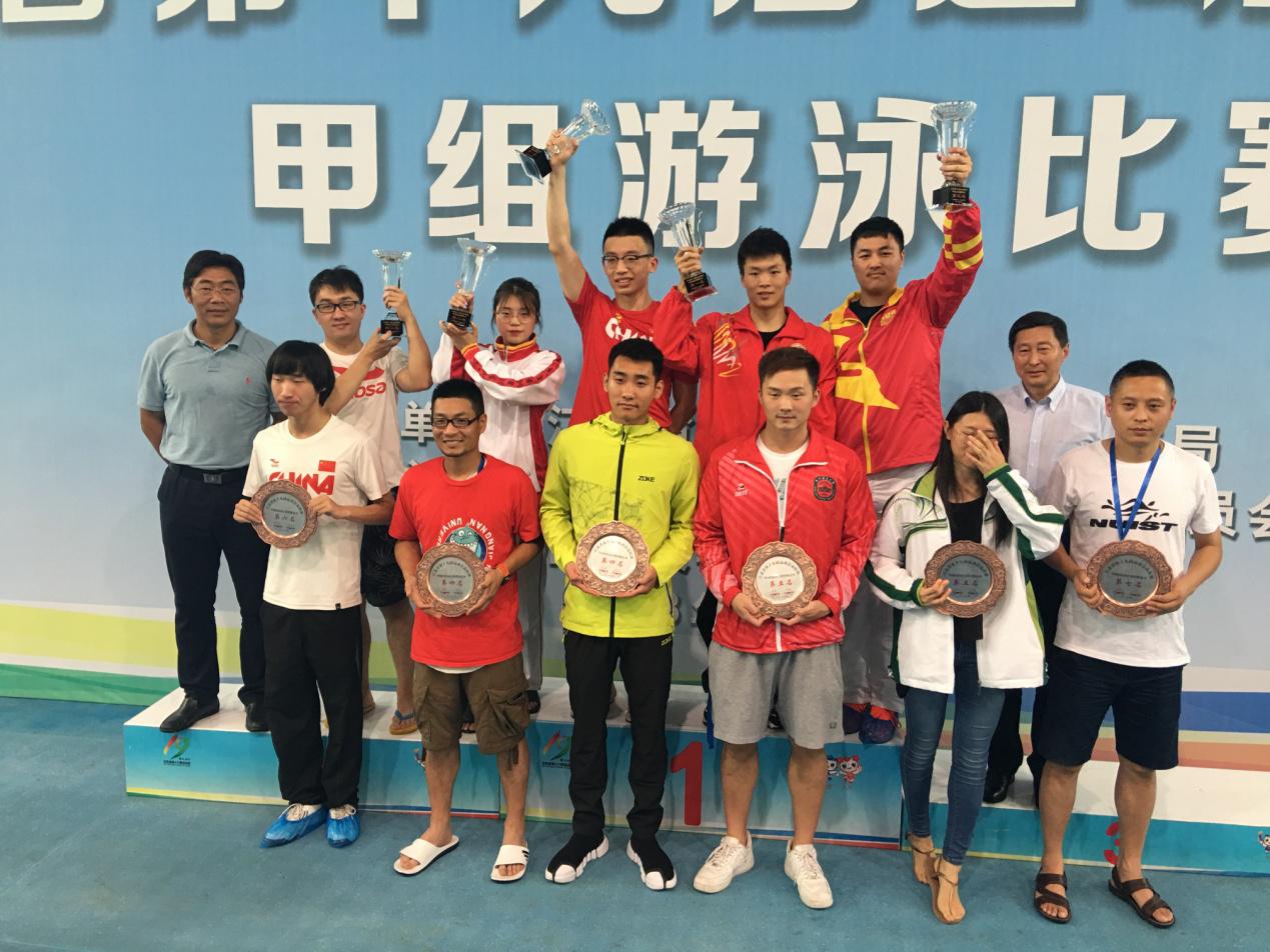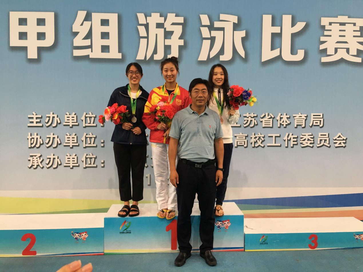 经过三天六场比赛的激烈角逐,在教练和全体运动员的努力下,我校游泳队共斩获3项冠军、1项亚军和11项季军,以186分的成绩获得普通生组团体总分第三的佳绩,同时获得 “体育道德风尚奖”运动队,吴琦、韩芷慧、王彤旭三位队员获“体育道德风尚奖”运动员称号。