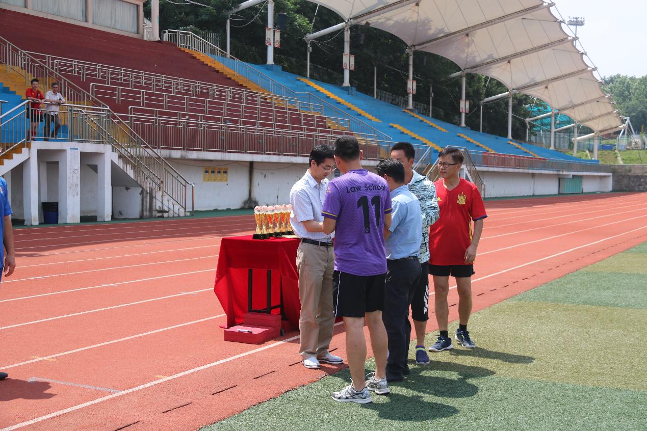 随着最后一场比赛的终场哨声吹响,本届赛事的各个奖项也全部揭晓。最终,机关直属联队、体育部摘得桂冠,数理外语联队斩获亚军,校友队、计算机建筑学院联队获得季军,先进材料研究院、化工学院、材料学院、机械学院分别获得四、五、六、七名,环境电控学院联队和法学院并列获得第八名。计算机建筑学院联队和机械学院获得最佳组织奖,法学院获得体育道德风尚奖。蔡海彪(机关直属联队)获得最佳射手奖,马会利(先进材料研究院)获得最佳守门员奖。