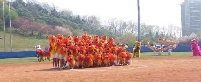 3月31日上午,在我校第十二届垒球文化节开幕式上,江苏省非物质文化遗产“手狮”首次出现在我校的体育文化舞台上,一百多年前的“手狮”和具有百年办学历史的南京工业大学在体育场如期相遇了。