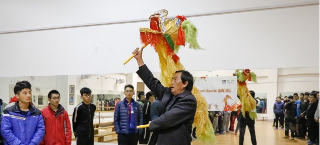 通常我们提起传统体育都会想到武术、太极拳等。这次在我们身边的“手狮”则呈现出另外的一种风格和韵律。手狮可舞、可练、可双人、可独角、可群体配合、可混搭技巧、可朴素无华、可娱乐可展示,是一种集体育娱乐、社火表演于一体的民族传统活动。作为新兴的体育教学内容,非常符合在大学生中进行普及和开展。为此,我校体育部在经费紧张的条件下,依然为手狮课程建设大开绿灯,购买了40头手狮,全体民传教研室的老师们开始了教学和培训的探索。经过虚心学习、消化、不断练习之后,终于成功的完成了第一次手狮的集体表演排练,在本次垒球文化节开幕式上首次登台亮相,给同学老师留下了深刻的印象。