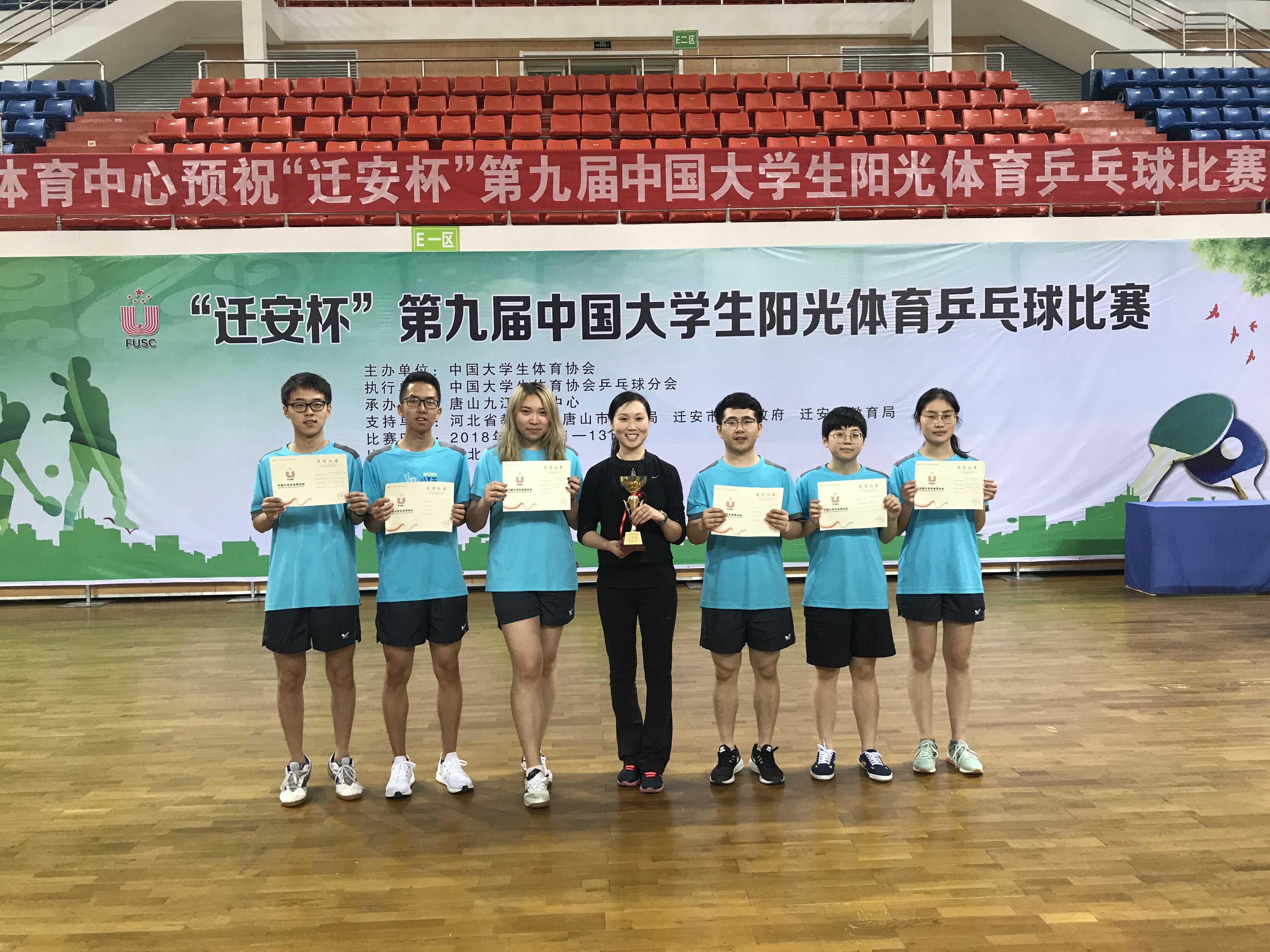 5月11日—13日,由中国大学生体育协会主办的“迁安杯”第九届中国大学生阳光体育乒乓球比赛在唐山九江体育中心顺利举行。此次比赛共有来自全国11个省市的32支高校参赛,这也是我校大学生乒乓球队首次组队参加全国性的乒乓球赛事。