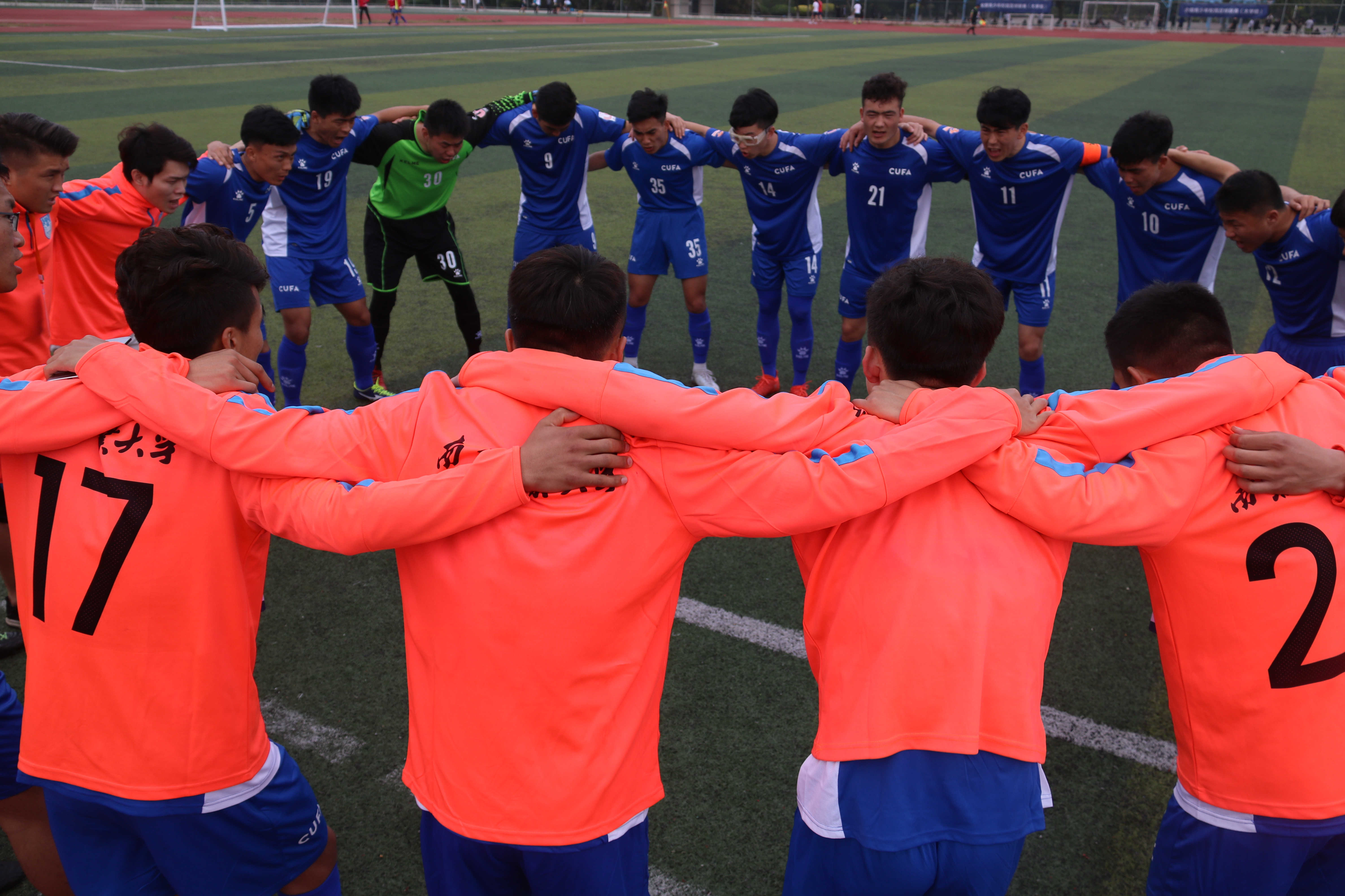 第二场比赛,对阵厦门大学嘉庚学院,面对对方极致的“小快灵”打法,球队制定了高举高打的战术策略,虽然在下半场比赛让对手先入一球,但南工全队没有放弃,一次次地进攻威胁着对手的球门,最终,在下半场伤停补时的最后一刻,南工获得一粒角球,徐鹏在空中高高跃起,将球顶进球门,为球队扳平比分。在随后的点球大战中,球队又以4-3取胜,从而以5个积分和胜负关系的优势提前一轮闯进东南区8强。