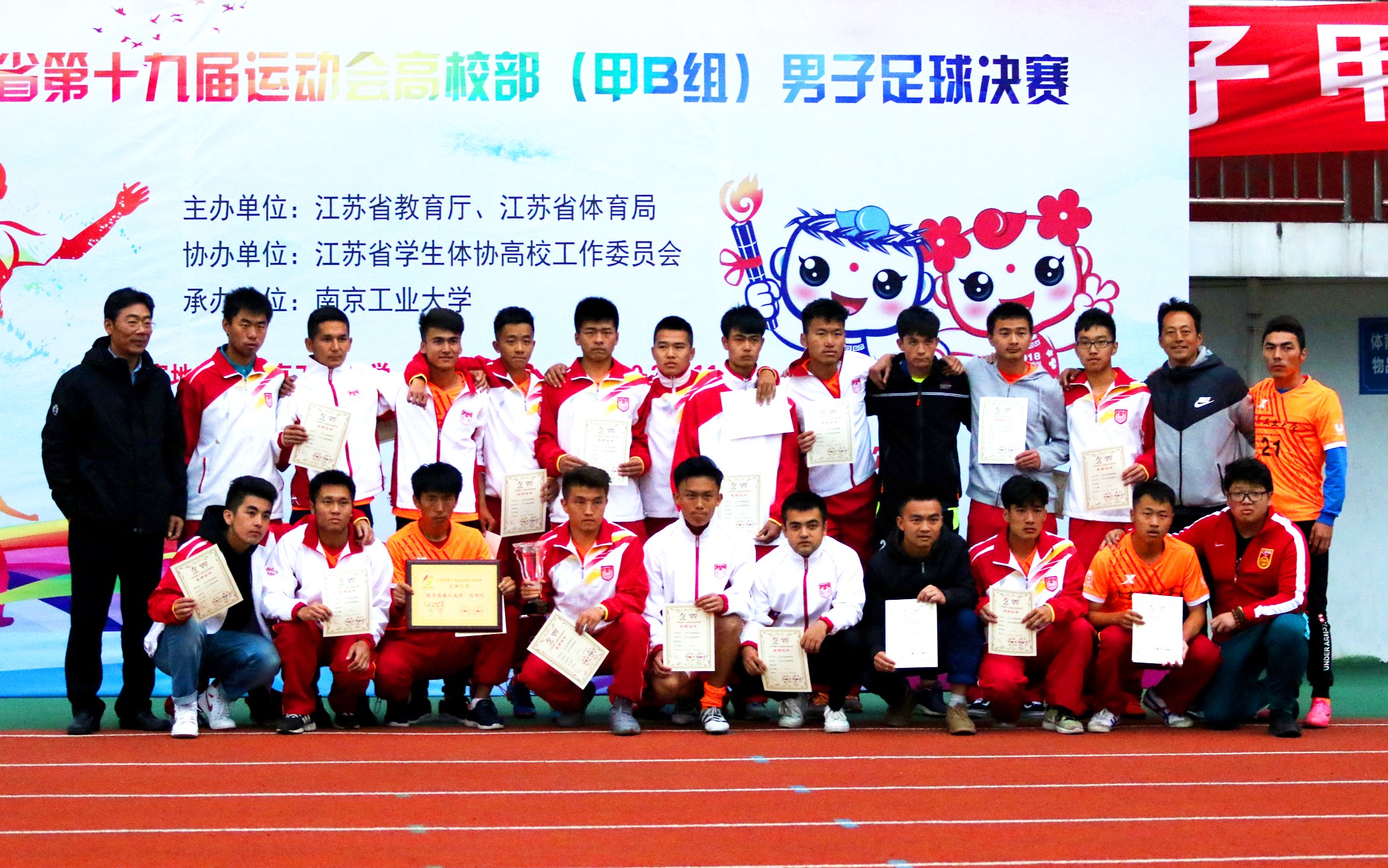 2017年10月27日-11月3日,第十九届江苏省运动会高校部男子足球甲B组比赛在我校举行,来自全省11所高校的男子足球队为了象征着全省高校部普通生男子足球的最高荣誉发起最后的冲击!