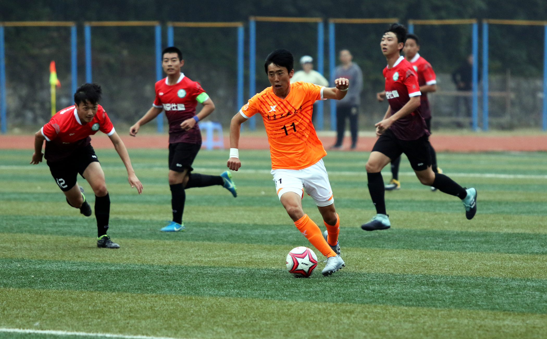 我校男子足球队在领队孙欣荣老师,主教练成一祥老师的带领下,小组赛3胜1平(点球胜)1负取得小组第一。在半决赛的对决中,南工男足2:0战胜东大男足,与南林会师决赛!决赛上,双方在90分钟的比赛内站成0:0平,最终的点球大战,3:4惜败对手,屈居亚军。