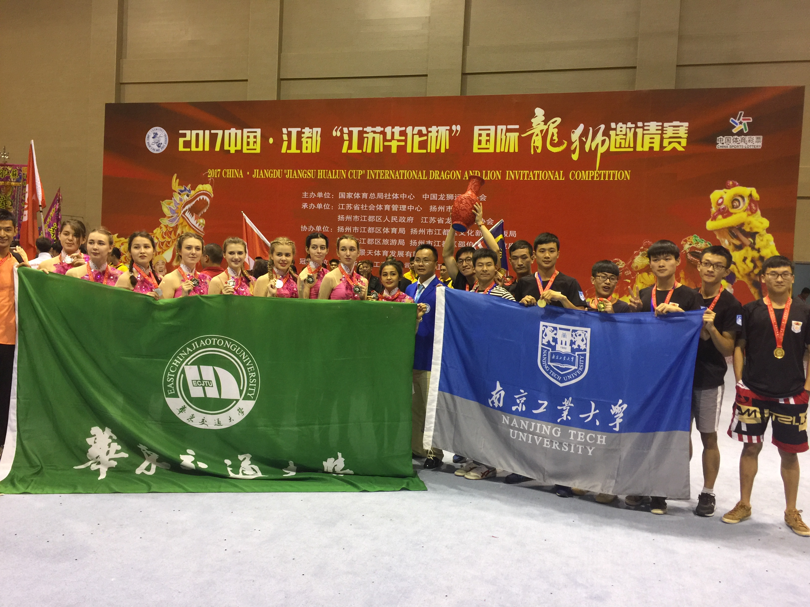 大赛期间,我校北狮还参加了组委会举办的中华传统龙狮文化论坛和邵伯古镇龙狮表演活动,借助龙狮,用有效的“体育语言”向来自世界不同地区的运动员推介中华传统文化,增进我校狮队和其他地区的文化交流,很好地展示了南工狮队的风采。