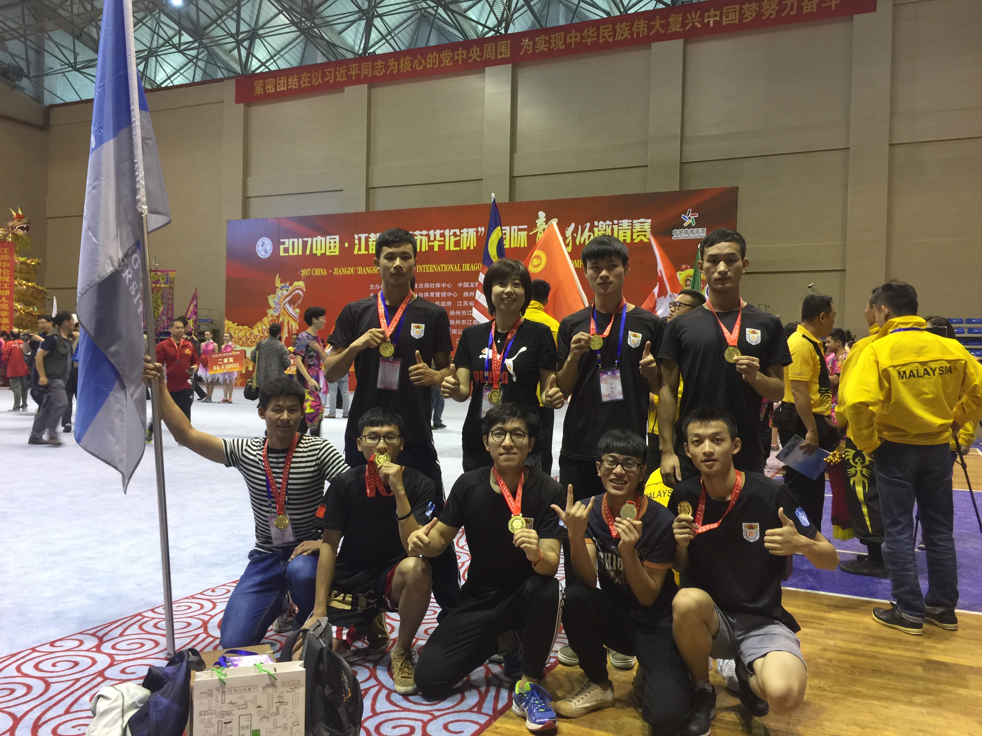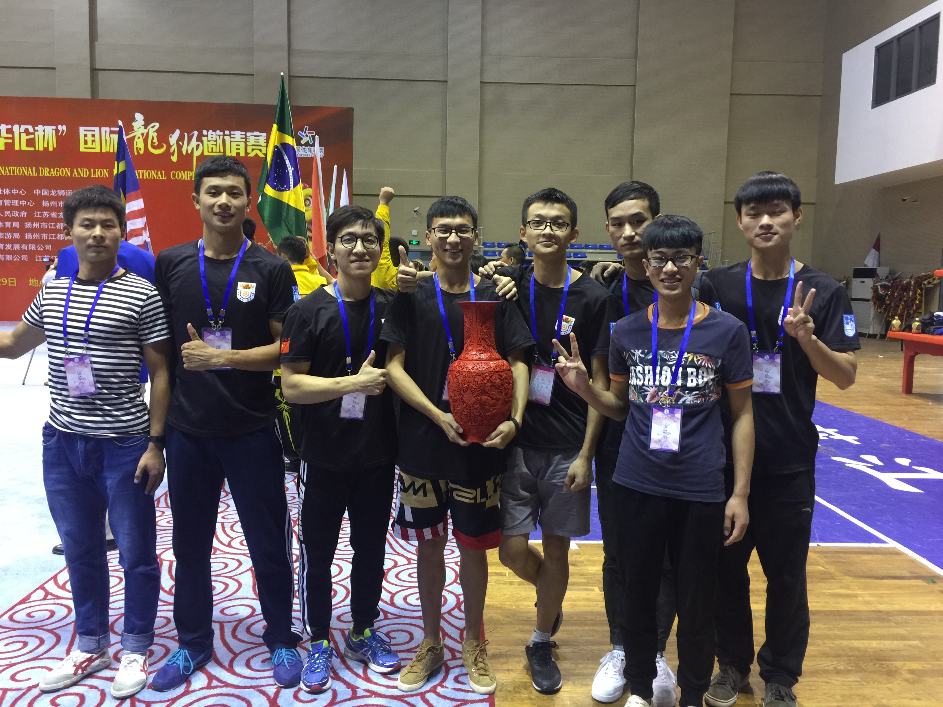 这是我校狮队继2003年龙队参加江西九江龙狮国际比赛后,时隔14年再次有机会参与国际龙狮比赛。本次比赛高手云集,赛场上锣鼓喧天、运动员们激情四溢,加上声情并茂的专业现场解说,参赛队伍充分展现出了传统舞狮的精湛技艺和扎实的功底。我校狮队由教练严燕老师带队,经过三轮比拼,最终三轮积分领先,获得北狮组第一名的好成绩。